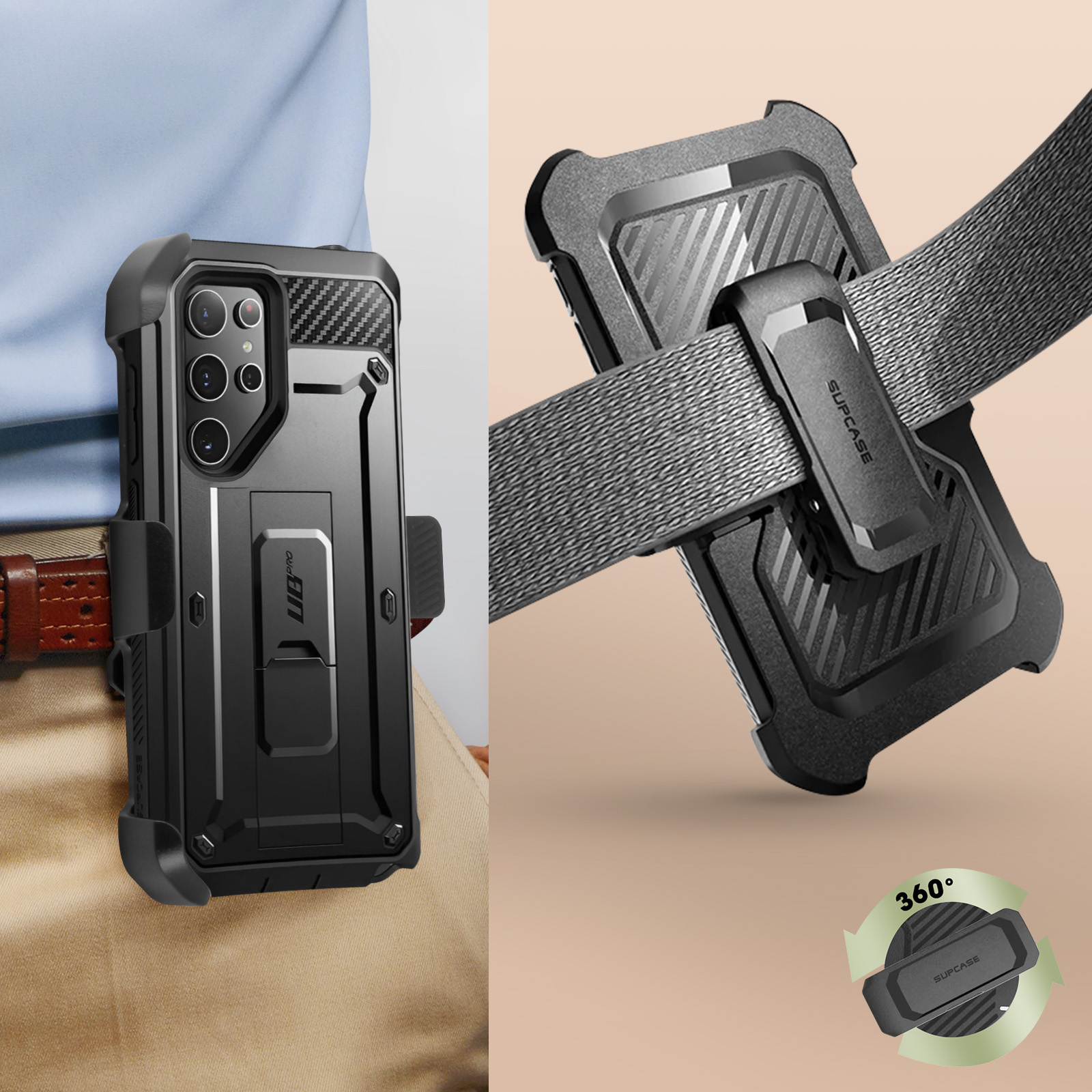 Supcase Coque Intégrale pour Samsung Galaxy S24 Ultra Antichoc avec Béquille Noir