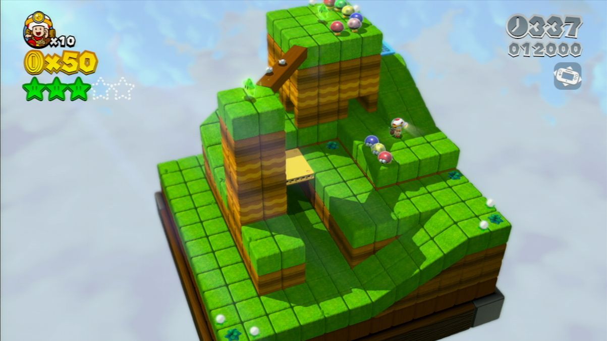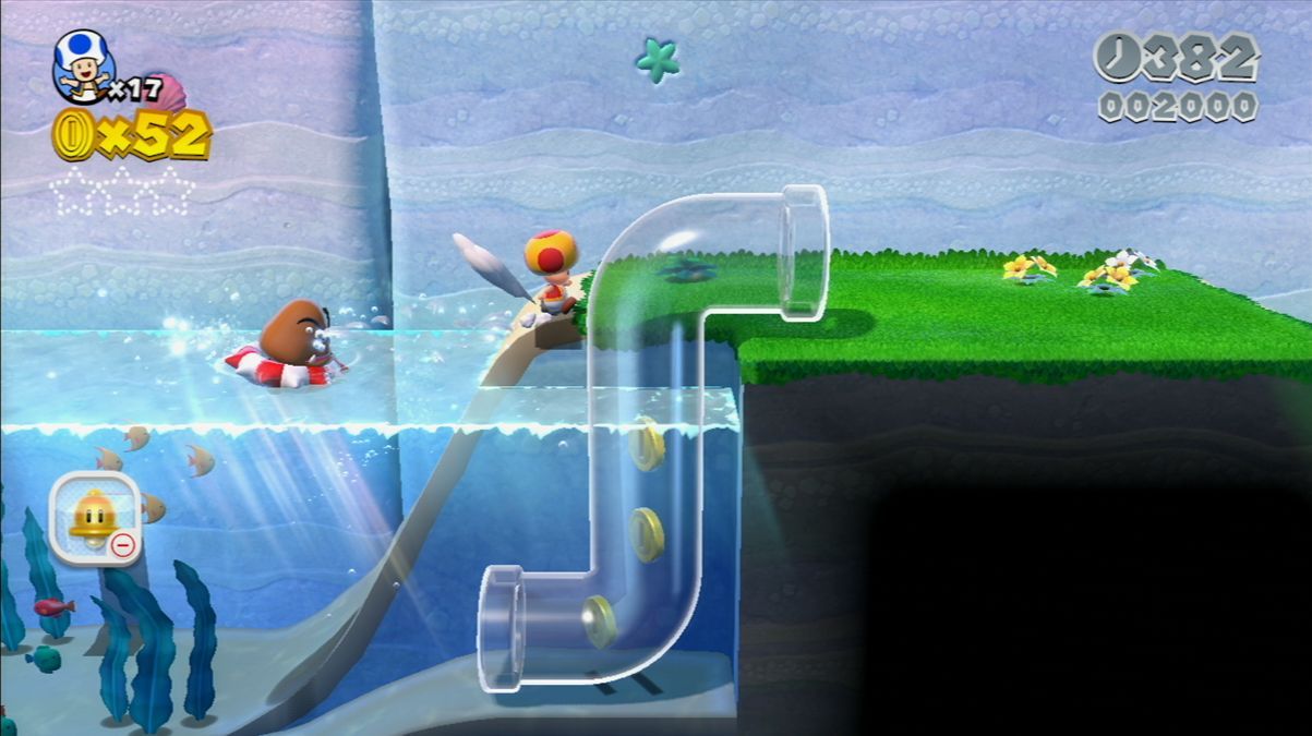 Partez à l'aventure avec Mario, Luigi et leurs amis au royaume des fées Libellas dans Super Mario 3D World. Bowser a kidnappé la princesse Libella, et Mario et ses camarades sont partis à son secours. Le royaume est parsemé de toutes sortes de pièges que nos héros vont devoir déjouer : des enchevêtrements de tuyaux transparents, des bombes à jeter sur l'ennemi et des trains semés d'embûches ! La collection de chapeaux de Mario - et le nombre de ses transformations - ne cesse de s'étendre ! Outre les classiques Mario tanuki et Mario boomerang, le titre propose de nombreuses nouveautés. Les Super clochettes transforment Mario en un chat capable de grimper aux murs et de donner des coups de pattes. Les Boîtes canons permettent de tirer des boulets et les Double cerises dédoublent les personnages !
