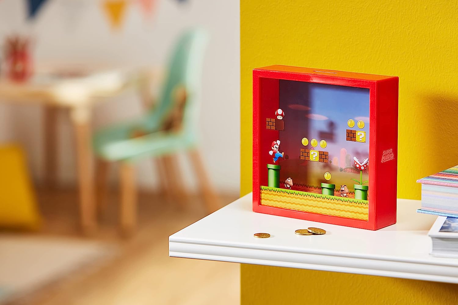 Lorsque vous avez besoin d'économiser pour votre prochaine aventure, cette tirelire Super Mario est l'endroit idéal pour stocker votre argent durement gagné. Conçue comme un jeu de plate-forme classique avec un effet 3D ainsi que des graphiques des pièces emblématiques, des blocs de questions et des blocs de briques visibles dans la franchise Super Mario.