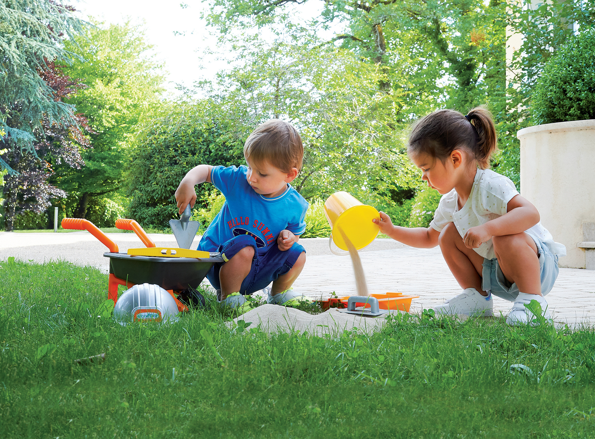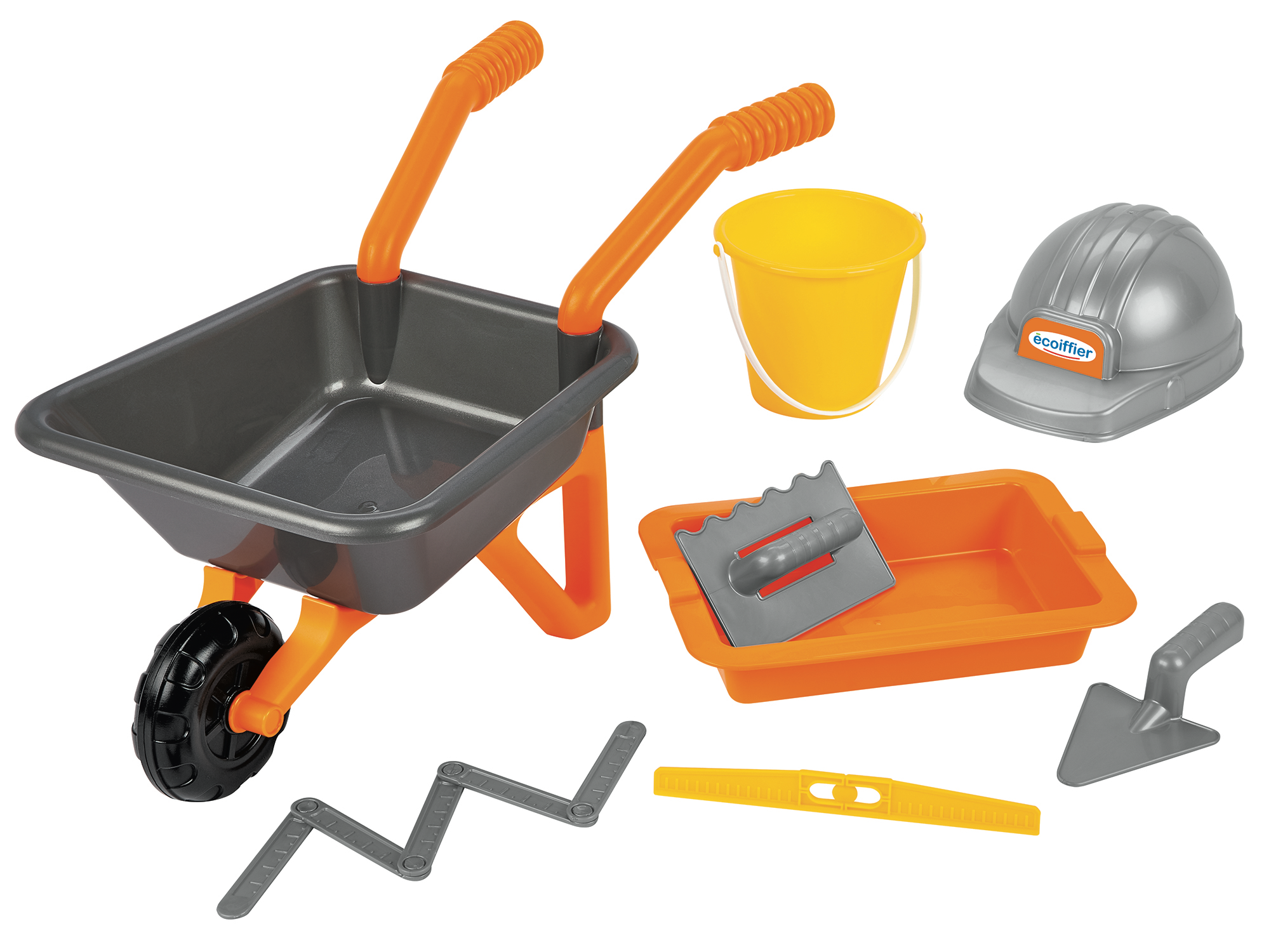 Ce super pack maçonnerie contient: 1 brouette, 1 auge, 1 truelle, 1 taloche, 1 niveau, 1 seau, 1 mètre et 1 casque de chantier. 8 pièces au total. Dès 18 mois. Origine France Garantie.