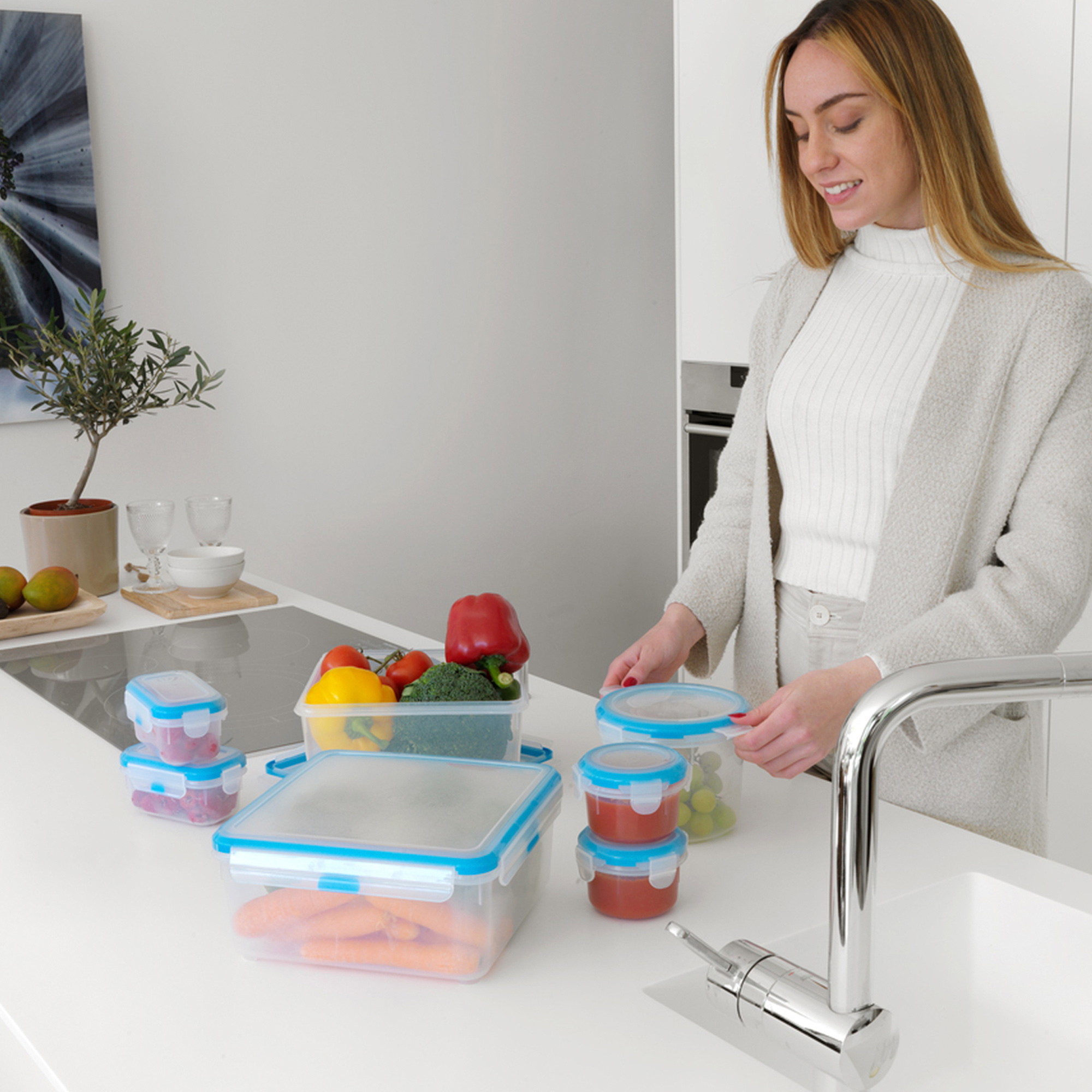 La famille des hostiques Conservers Super Look est conçue pour ceux qui recherchent un plus dans la conservation et le transport de leur nourriture. Ils ont une forme rectangulaire ou ronde pour faciliter le stockage / l'empilement dans les armoires, les réfrigérateurs, les sacs à dos, etc. Son design incorant 4 piqûres pour ouvrir et fermer et un sceau TPE qui vous permet d'atteindre une fermeture à 100% hermétique assurant une meilleure conservation des aliments, un design à l'épreuve des fuites qui offre une expérience de stockage sans déversement, entièrement compatible à partir d'aliments secs, même des soupes et des sauces. Fabriqué avec des plastiques de qualité libre de haute qualité et toxiques. 100% hygiénique, ne conserve pas les odeurs ou les saveurs. Hiretics apte pour le lave-vaisselle, le micro-ondes, le réfrigérateur et le congélateur. La nourriture intérieure ne perd pas de propriétés. Avec le compteur à l'intérieur pour faciliter l'utilisation. Fabriqué en Espagne.