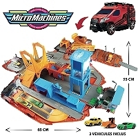 Un super van qui transporte tout le monde Micro Machines ! Quand on louvre, un véritable terrain de jeu se déploie : des ponts, des ascenseurs, des rampes, une piste de course, des terrains vagues, une tour de contrôle .. Tout est réuni pour samuser avec ses voitures ! Le plus ? 3 véhicules exclusifs sont inclus dans le pack !