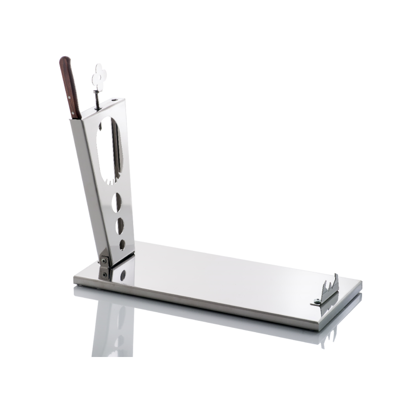 Porte-jambon pliable en acier inoxydable avec couteau .Caractéristiques du porte-jambon:Fabriqué en acier inoxydable poli. Système de fixation unique. Le jambon est parfaitement et sûrement ancré. Butées antidérapantes sous la base pour offrir une parfaite stabilité.Plié, il ne prend pas de place dans l'armoire, 6cm de large.Il est très facile à nettoyer, une fois le jambon terminé, il peut être mis dans le lave-vaisselle. Emplacements prévus pour le couteau et l'aiguiseur (aiguiseur non inclus).Livré avec un couteau à jambon de qualité fabriqué en Espagne.Fabriqué en Espagne.Dimensions:- Ouvert: 37 ( Hauteur ) 45 (Largeur ) 20 ( Profondeur ) cm.- Plié: 6 ( Hauteur ) 45 (Largeur ) 20 ( Profondeur ) cm.Par son design et son faible volume, conçu pour s'intégrer dans la cuisine.Confortable et pratique, le porte-jambon ZEN vous permettra de réaliser une découpe parfaite du jambon.Brevet n° 002067843