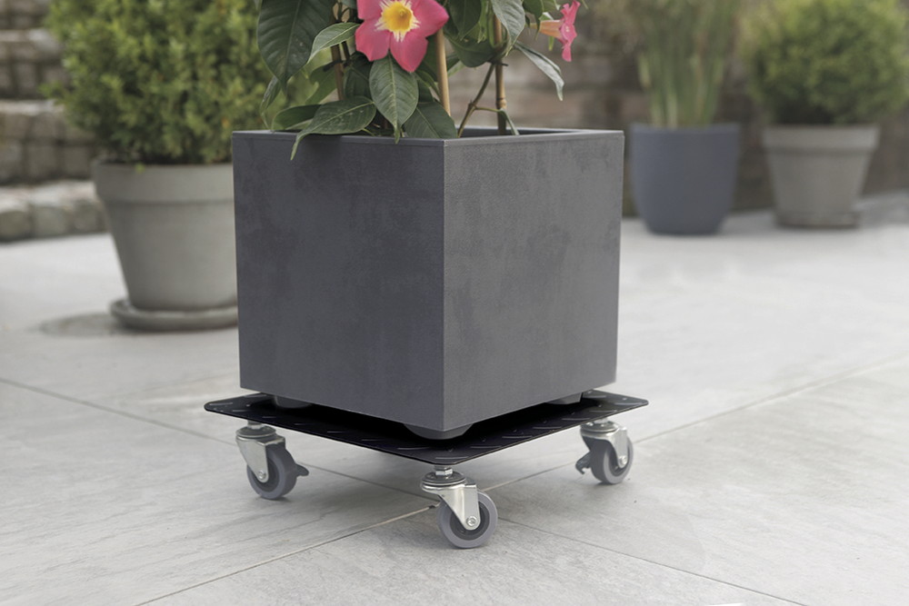 | Libellé | Support à roulettes carré Flora Roll Factory en métal pour plantes - 0,30 x 0,30 m - Noir |