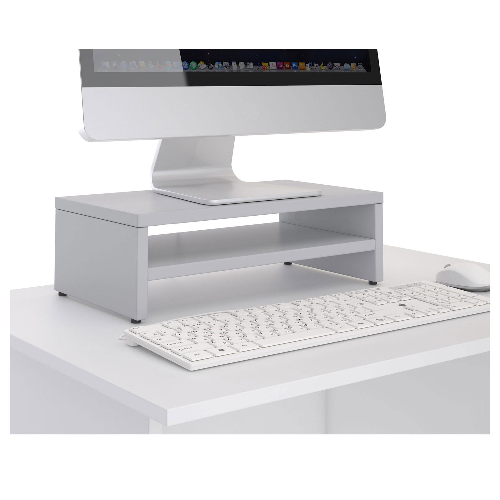 | Libellé | Support d'écran d'ordinateur DISPLAY, réhausseur pour moniteur avec étagère intermédiaire, longueur 42 cm en mélaminé gris clair mat |