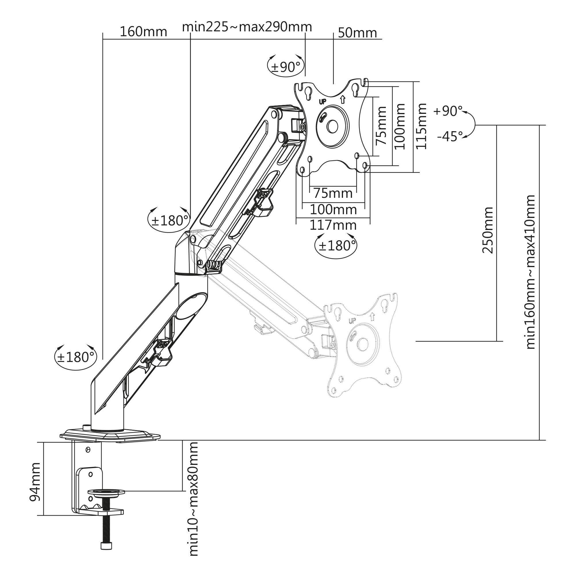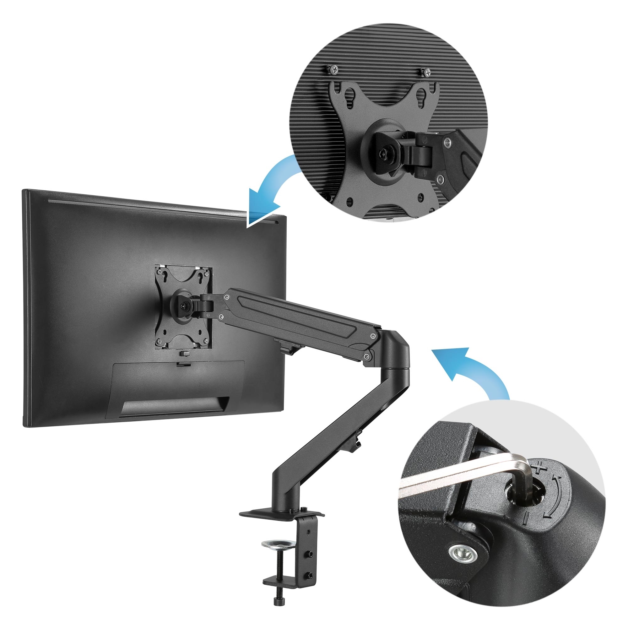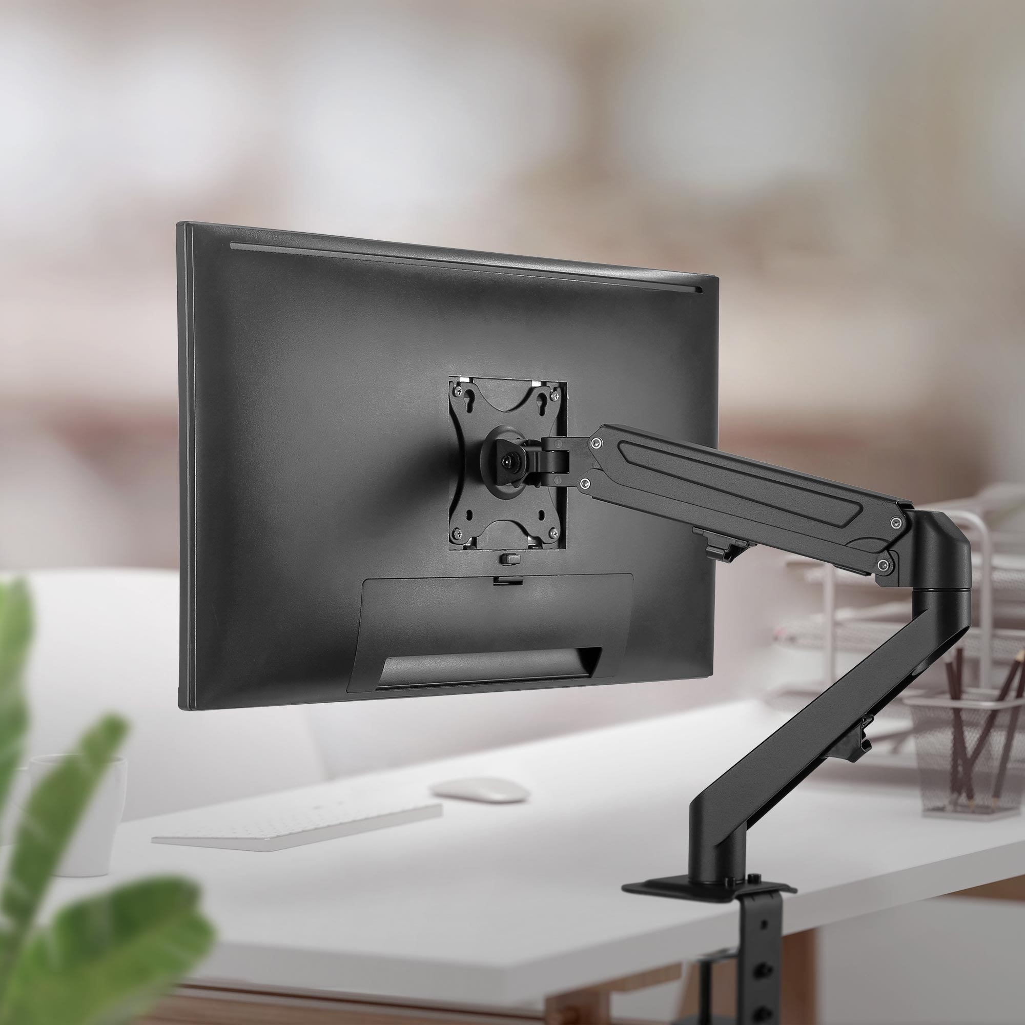 Ce support d'écran à bras unique offre une grande flexibilité avec un réglage complet. Vous pouvez facilement placer votre support d'écran dans une position horizontale ou verticale ou dans n'importe quel angle de vue.