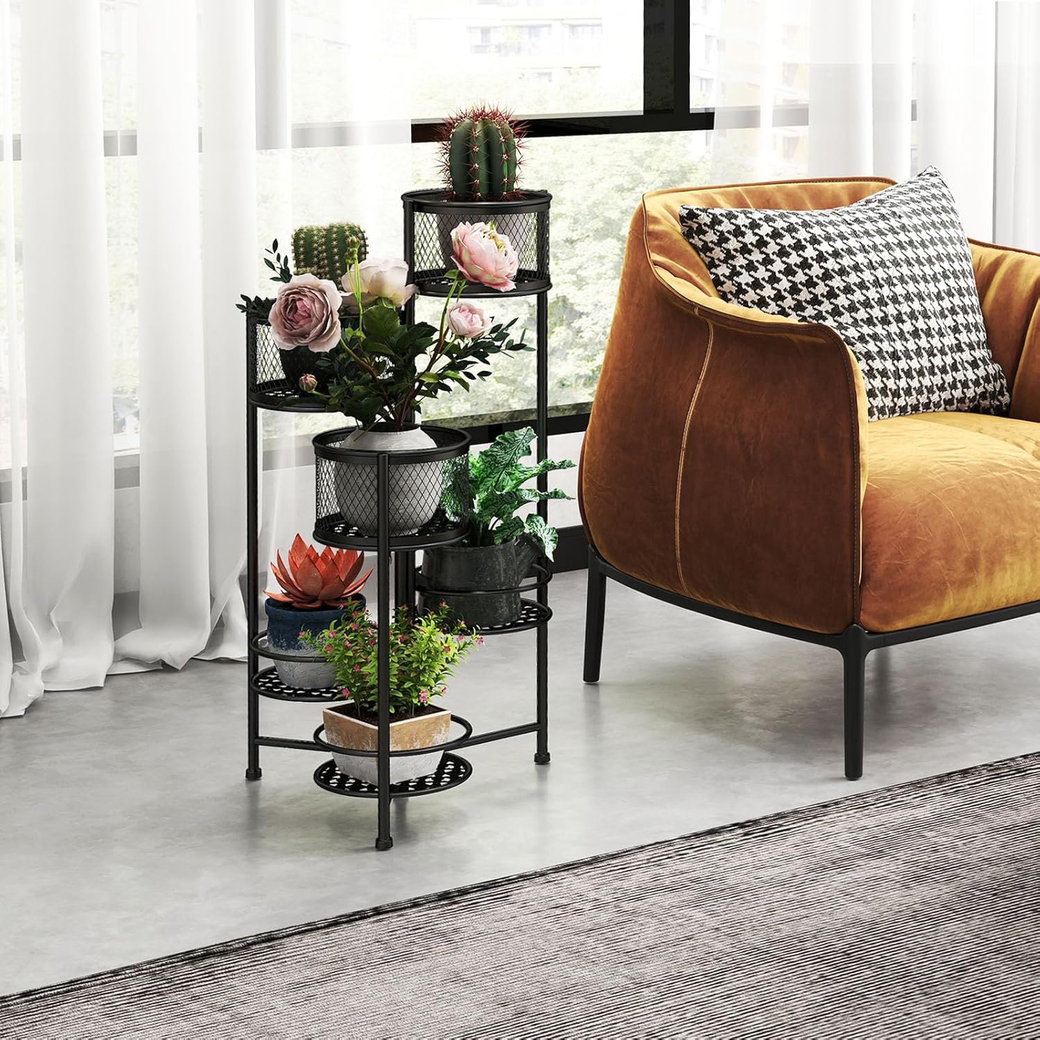 - Cadre métallique renforcé: Grâce à la structure métallique, le support de plante anti-déformant, tandis que sa surface résistante à la rouille assure une durée de vie plus longue. De plus, le support de plante est équipé de patins antidérapants pour plus de stabilité.