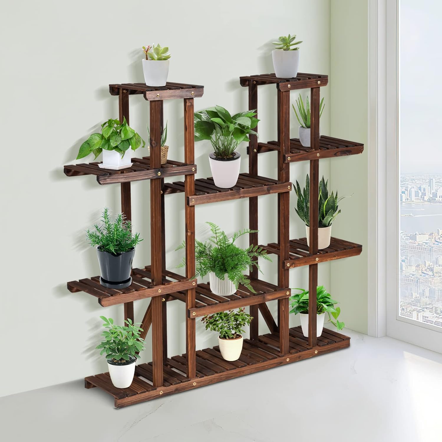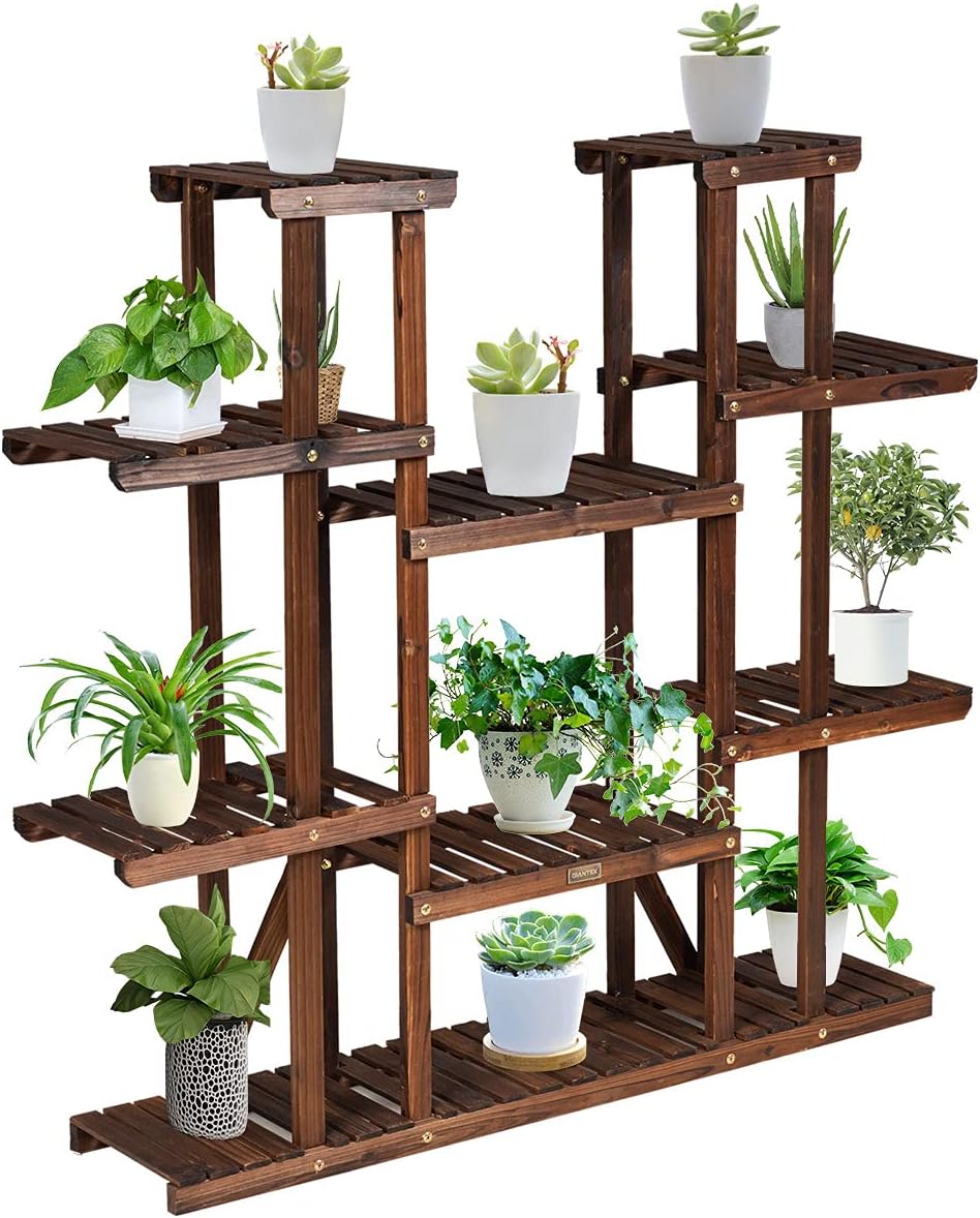 Support de plantes en bois de sapin avec 6 étagères, étagères à fleurs avec 10 tablettes