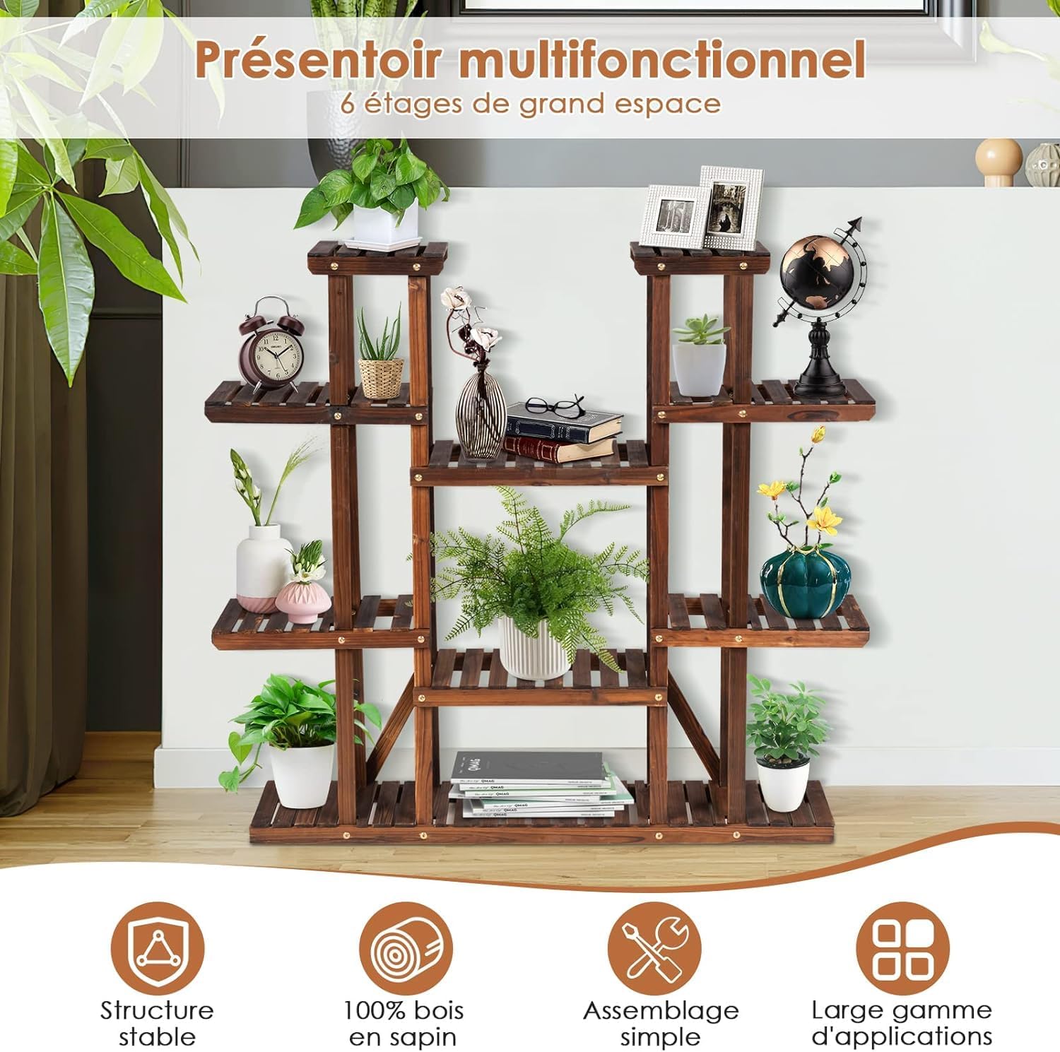 | Libellé | Support de plantes en bois de sapin avec 6 étagères, étagères à fleurs avec 10 tablettes |
