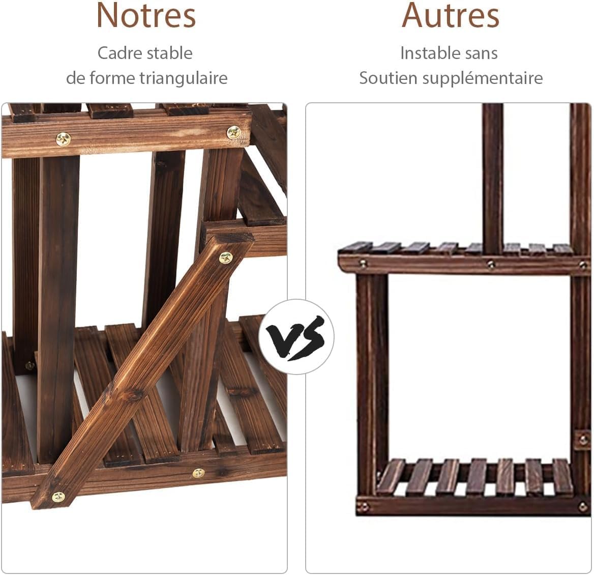 Ce porte-plante est fabriqué en bois de sapin carbonisé massif, le support pour plante est durable et difficile à déformer. Ce support pour plantes en bois est fabriqué en bois de sapin massif, qui est robuste et difficile à déformer. Traitées avec une carbonisation à haute température, la résistance et la stabilité des lattes de bois sont élevées. Conçu avec une forme triangulaire, l'étagère pour plantes est stable pour une utilisation à long terme.