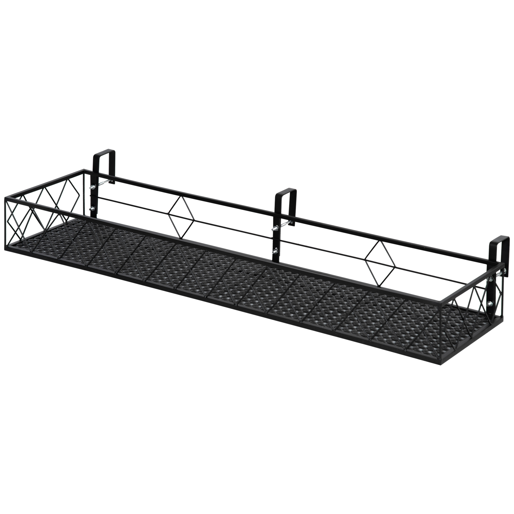 | Libellé | Support de pot de fleurs jardinière suspendu - fixations réglables - jardinière pour balcon - dim. 100L x 31l x 12H cm - métal noir |
