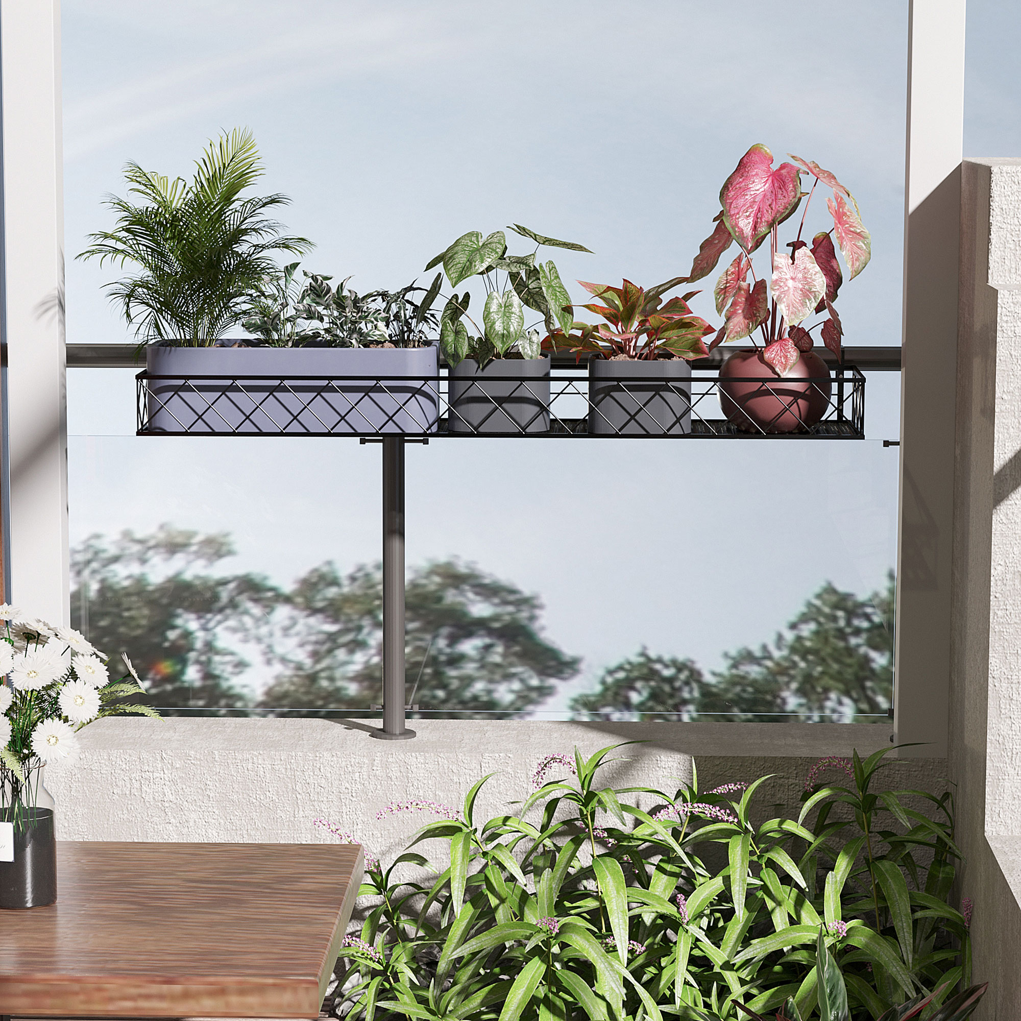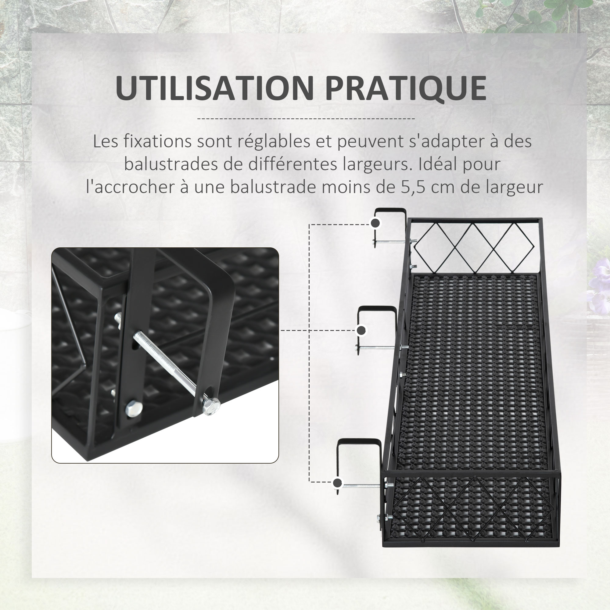 Support de pot de fleurs jardinière suspendu - fixations réglables - jardinière pour balcon - dim. 100L x