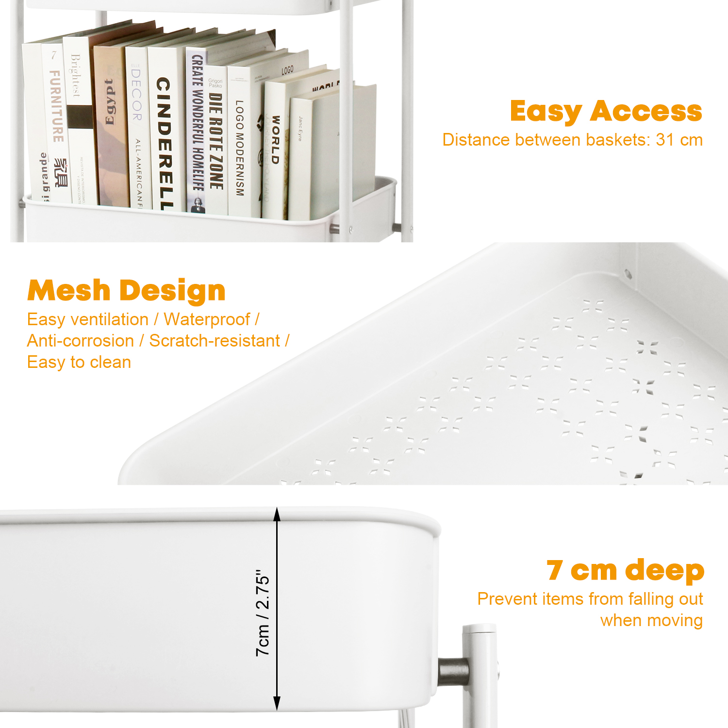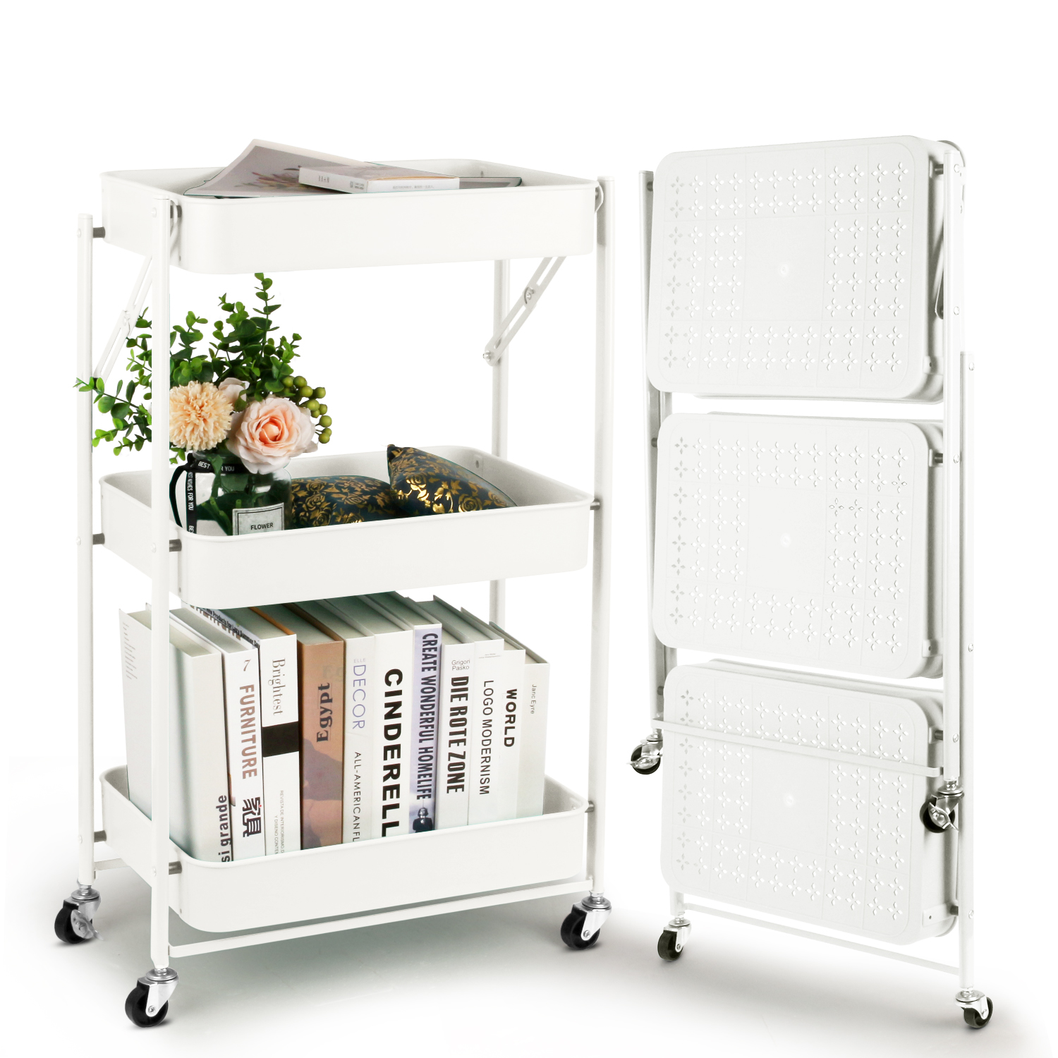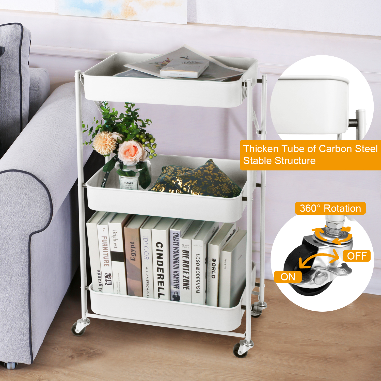 Il peut être utilisé pour ranger vos livres, magazines ou vos outils de jardinage. Il est livré avec des roues roulantes qui permettent de déplacer très facilement le chariot de stockage d'un endroit à un autre.