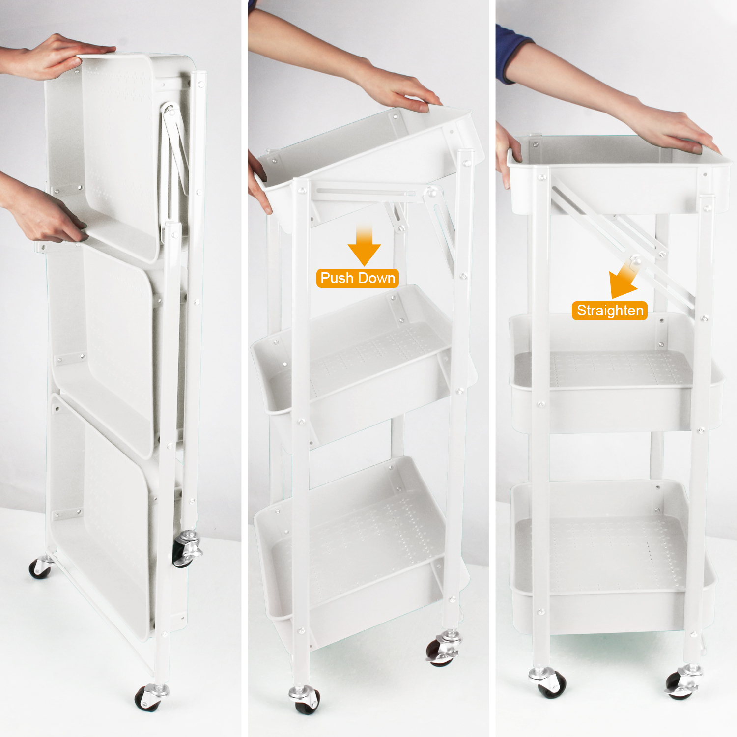 Libellé Support de Rangement Chariot à 3 Niveaux, Chariot de Rangement Roulant pour Cuisine, Salle de Bain, Organisateur de Rangement Mobile, Blanc