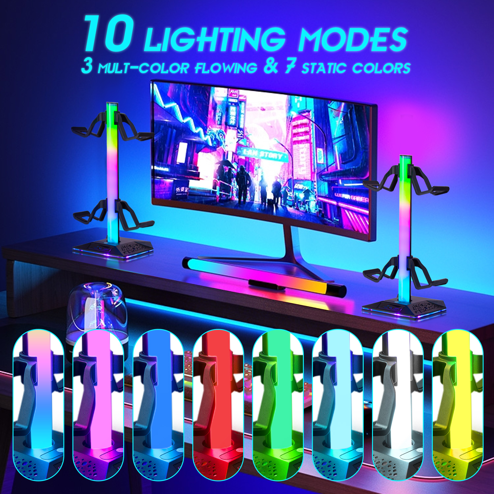 Support manette de jeu pour nintendo switch/xbox, support casque gamer rgb, avec 10 modes de lumière, 2 p
