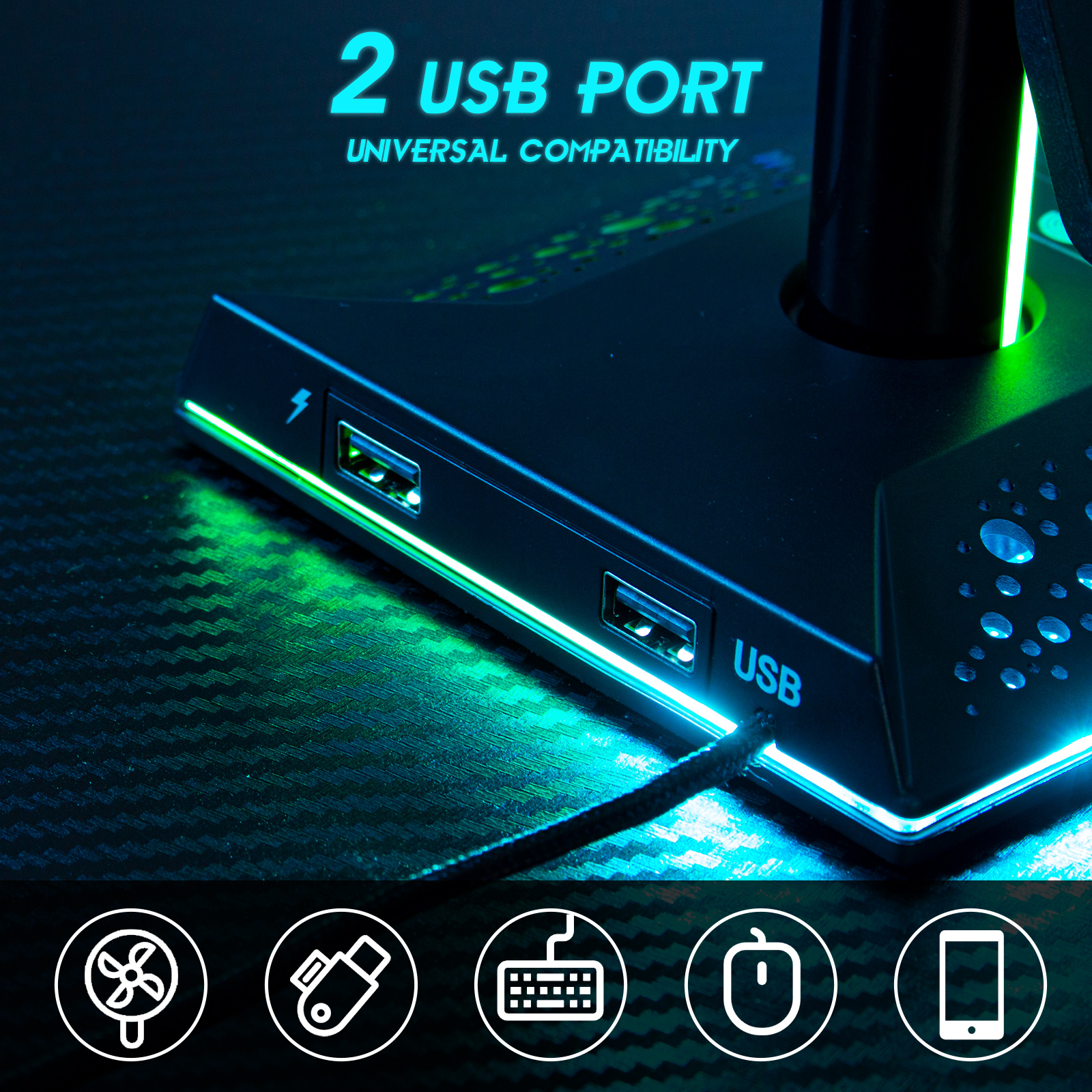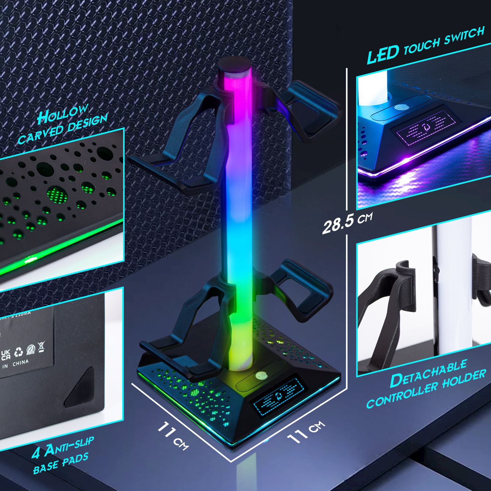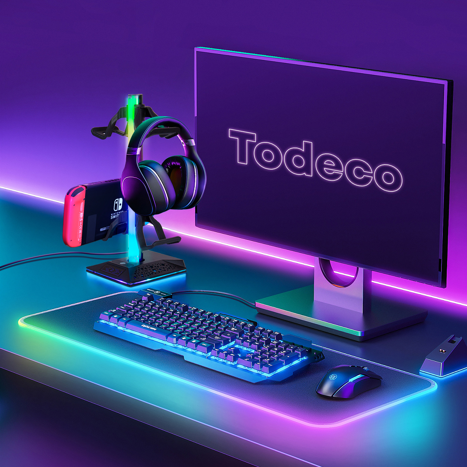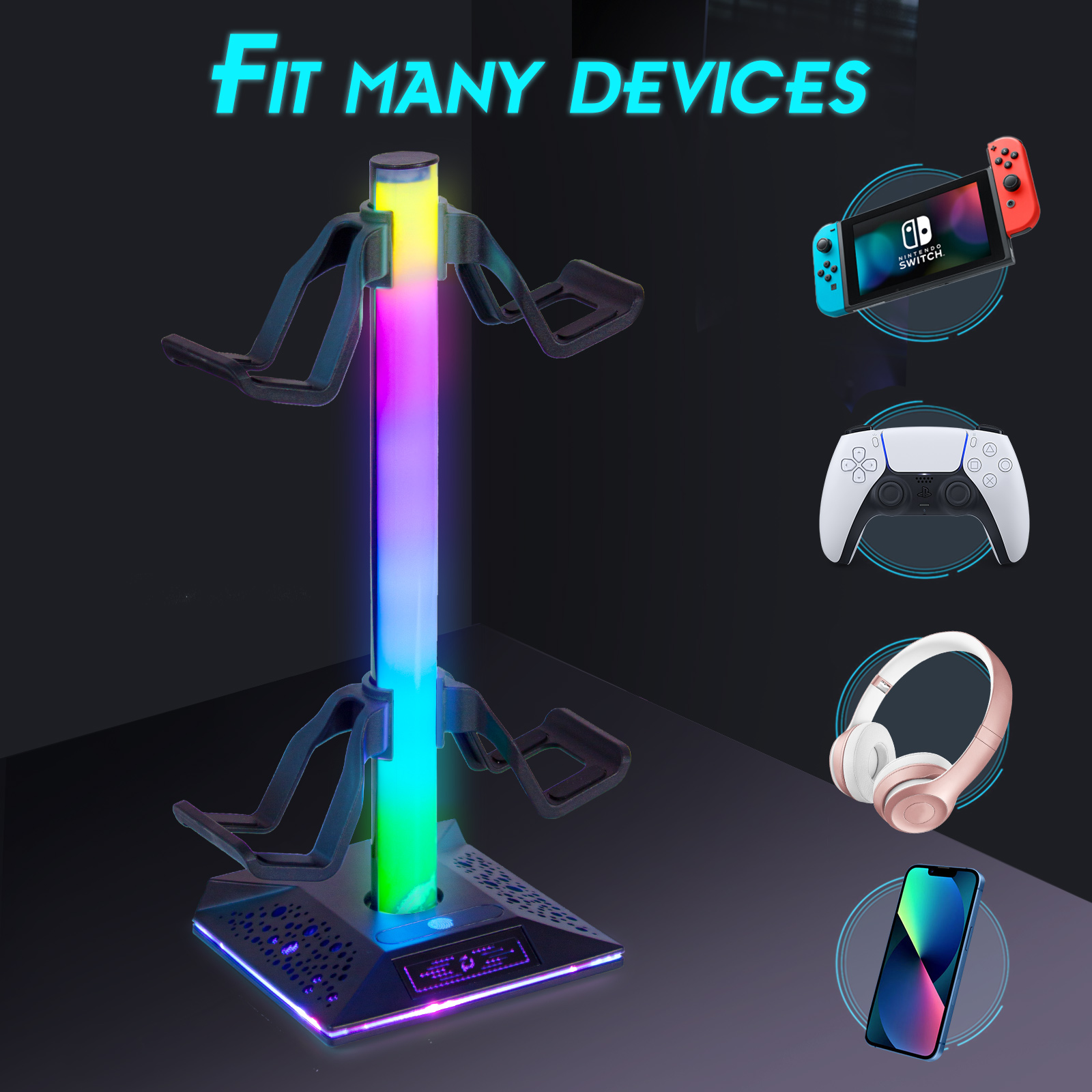 Libellé Support manette de jeu pour nintendo switch/xbox, support casque gamer rgb, avec 10 modes de lumière, 2 ports usb, accessoires de manette de jeu univ