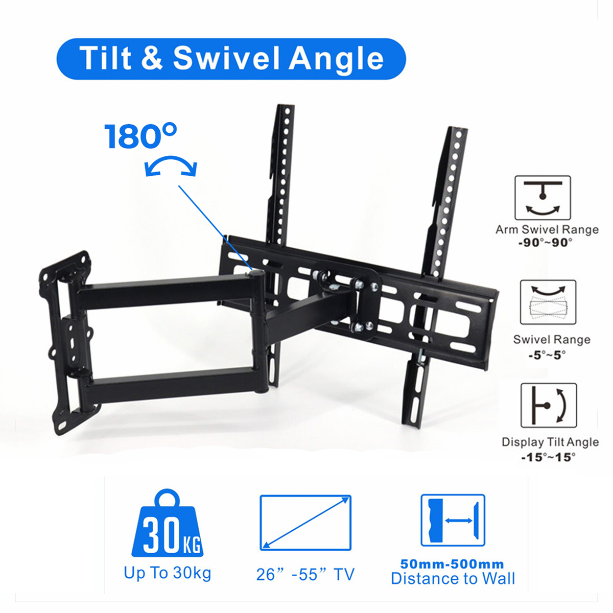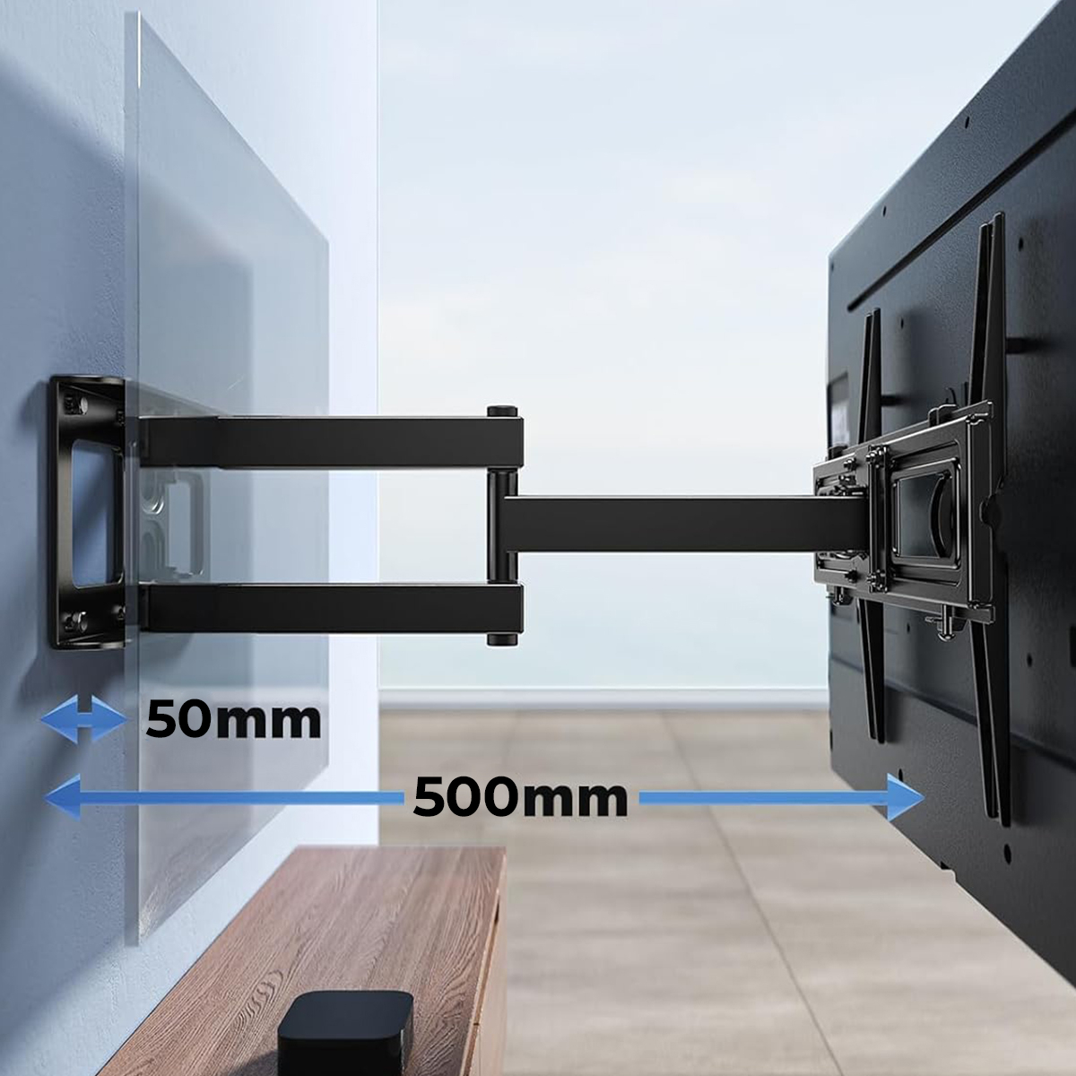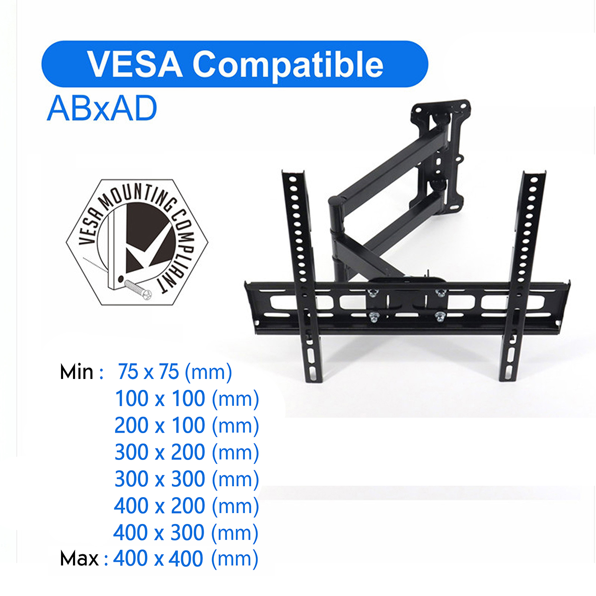 Support mural TV fabriqué en acier laminé à froid de 1,6 mm d’épaisseur. Il est très sûr et stable, fonctionne parfaitement pour la plupart des téléviseurs jusqu'à 30 kg et de 26" à 55" . Il peut pivoter à 90° et s'incliner de 15° vers le haut et le bas pour regarder votre télévision avec un angle de vue pratique. Installez votre écran à seulement 5 cm du mur avec une façade compatible VESA 400x400 400x300 400x200 300x300 300x200 200x200 200x100 100x100mm. Le matériel de montage standard pour fixer le support TV est inclu pour une installation facile. Le support TV peut être monté sur n'importe quel montant en bois, mur de brique ou de béton, mais pas sur une cloison sèche. Compatible pour les téléviseurs: TV OLED Samsung TQ55S90C 55", TV OLED LG OLED55C3 2023 55", TV OLED LG OLED42C3 2023 42", TV OLED LG OLED48C3 2023, TV LED LG 55QNED82 100Hz 2023 55", TV OLED LG OLED55G3 2023 55", TV LED LG 43UR78 2023 43", TV LED LG 55UR78 2023 55", TV LED LG 43NANO76 43", TV OLED Sony XR55A80L 55", TV LED Sony KD43X75WL 43", TV LED Sony KD50X75WL 50", TV LED Sony KD55X75WL 55", TV QLED Tcl 55C745 2023 55", TV LED Hisense 50E63KT 2023 50", TV LED Hisense 55E63KT 2023 55", TV QLED Samsung NeoQLED TQ55QN86C 2023 55", TV LED Tcl 43P735 43" , TV LED Tcl 55P638 55", TV SAMSUNG 55Q60B 55", TV LED SAMSUNG UE43TU7022 43", TV LED Polaroid 32", TV LED Essentiel B 32HD-A7000 Android 32", TV OLED Sony XR42A90K 42", TV Samsung UE43TU7172 TV LED 43", TV LED SONY KE43XH8096 43", TV LED POLAROID 42'', TV OLED LG OLED42C26LB 42"
