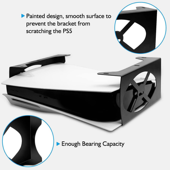 Sécurisé et stable : Fabriqué en métal robuste, ce support offre un maintien sûr à votre console PS5, garantissant qu'elle reste bien en place. La construction robuste empêche les chocs ou les mouvements accidentels, protégeant ainsi votre console contre les dommages.