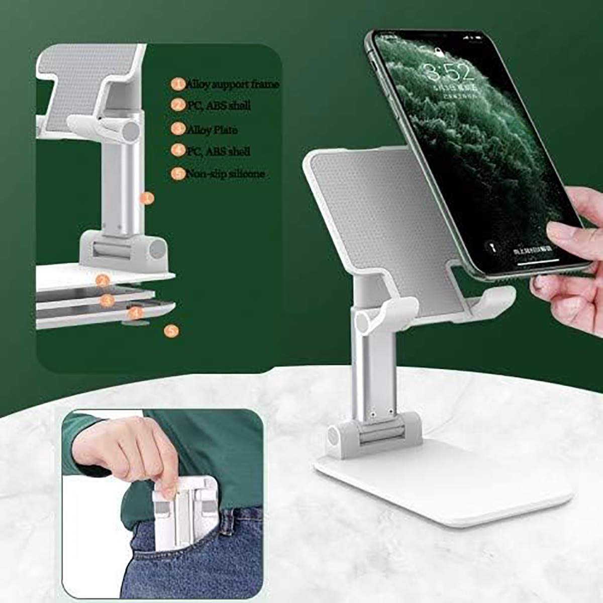 Support Portable avec Hauteur Angle Pliable et Réglable pour Samsung Galaxy S21 plus 5G SM-G966B 6.7"-Visiodirect- le support de téléphone portable est conçu de manière ergonomique pour permettre un ajustement flexible à la hauteur idéale Ainsi à l'angle. pratique à utiliser, vous pouvez regarder une vidéo ou un film, lisez ou enregistrez une vidéo, prendre des appels vidéo ou téléphoniques avec votre famille ou vos amis etc... Ce support de téléphone de bureau est pliable et peut être entièrement plié dans un format de poche, petit espace de rangement, facile à transporter.