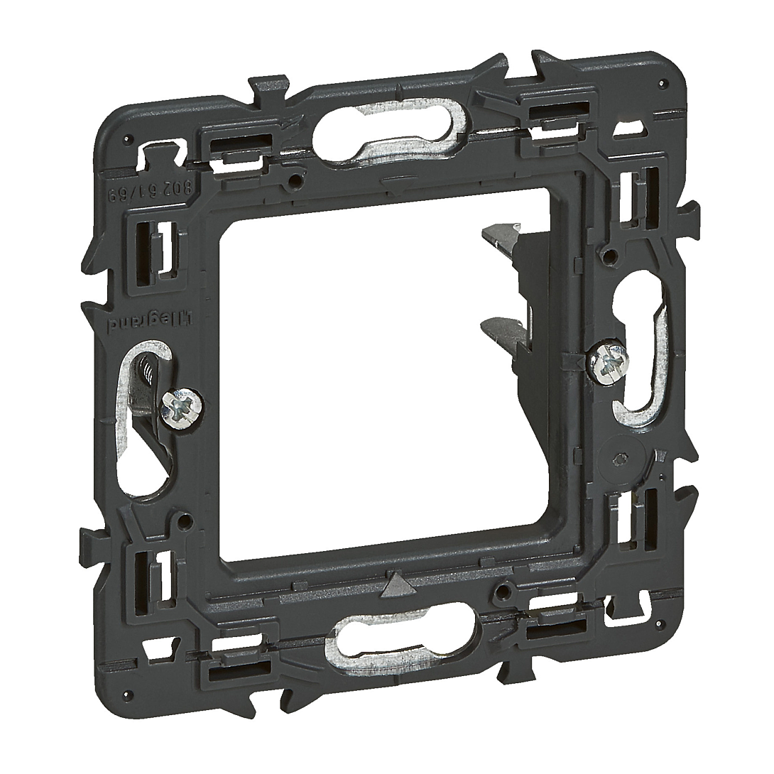 Support 2 modules pour fixation à griffes de mécanisme Mosaic dans boite d'encastrement ou cadre saillie - à associer pour montage multiposte ou pour plaques spéciale réonvation entraxe 57mm