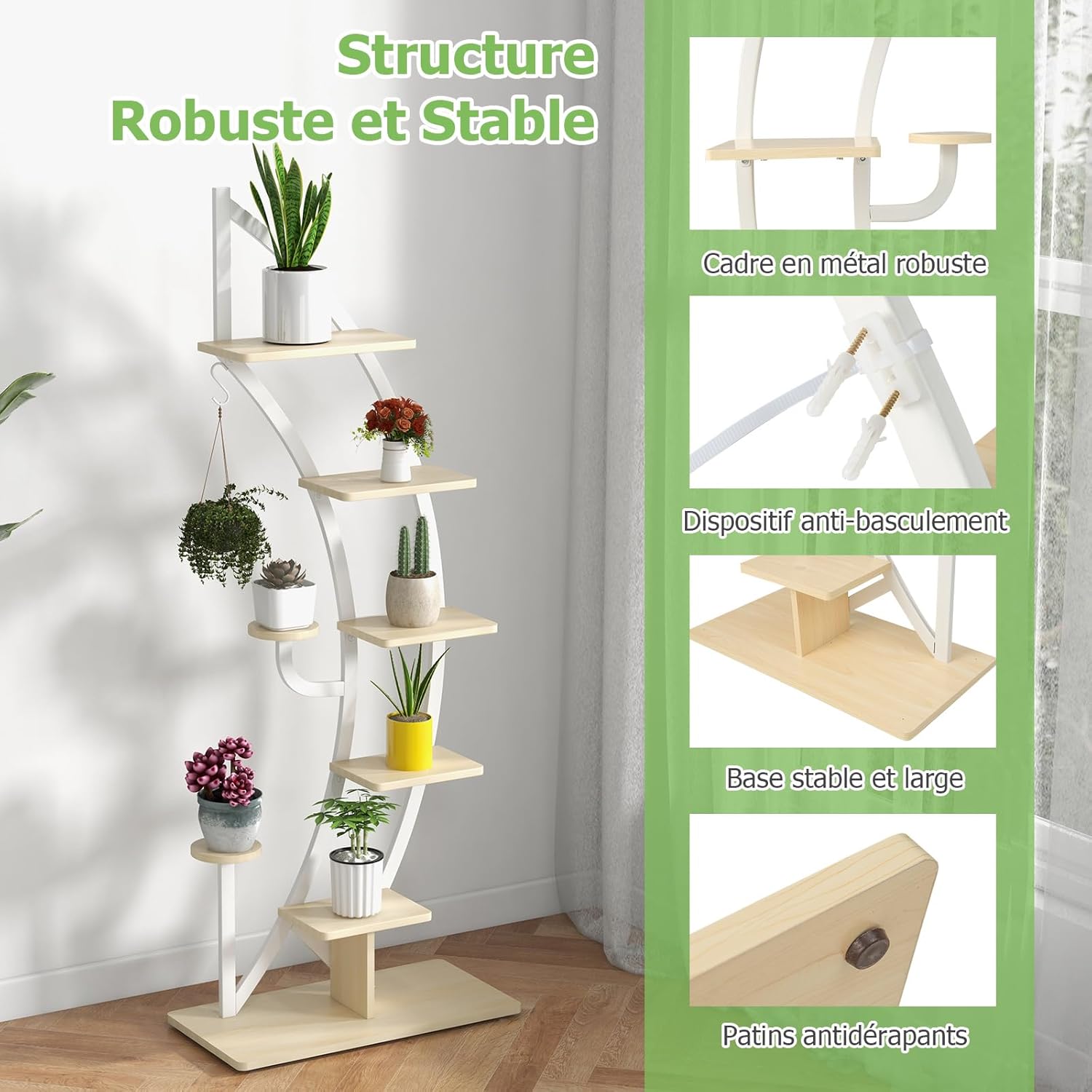 - Support à Plantes Multi Niveaux : Notre étagère pour plantes est doté de 7 étages pour exposer vos plantes. De plus, les supports pour plantes en métal sont équipés d'un crochet sur le dessus, parfaits pour exposer de petits pots ou des plantes suspendues.