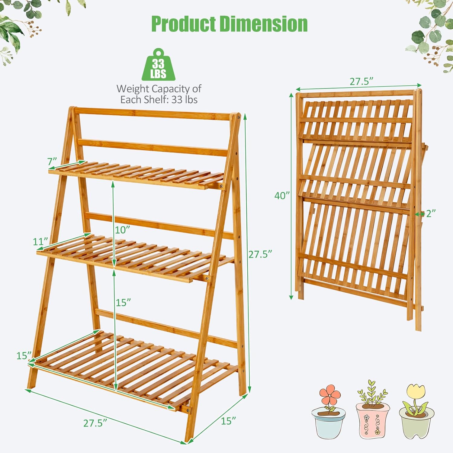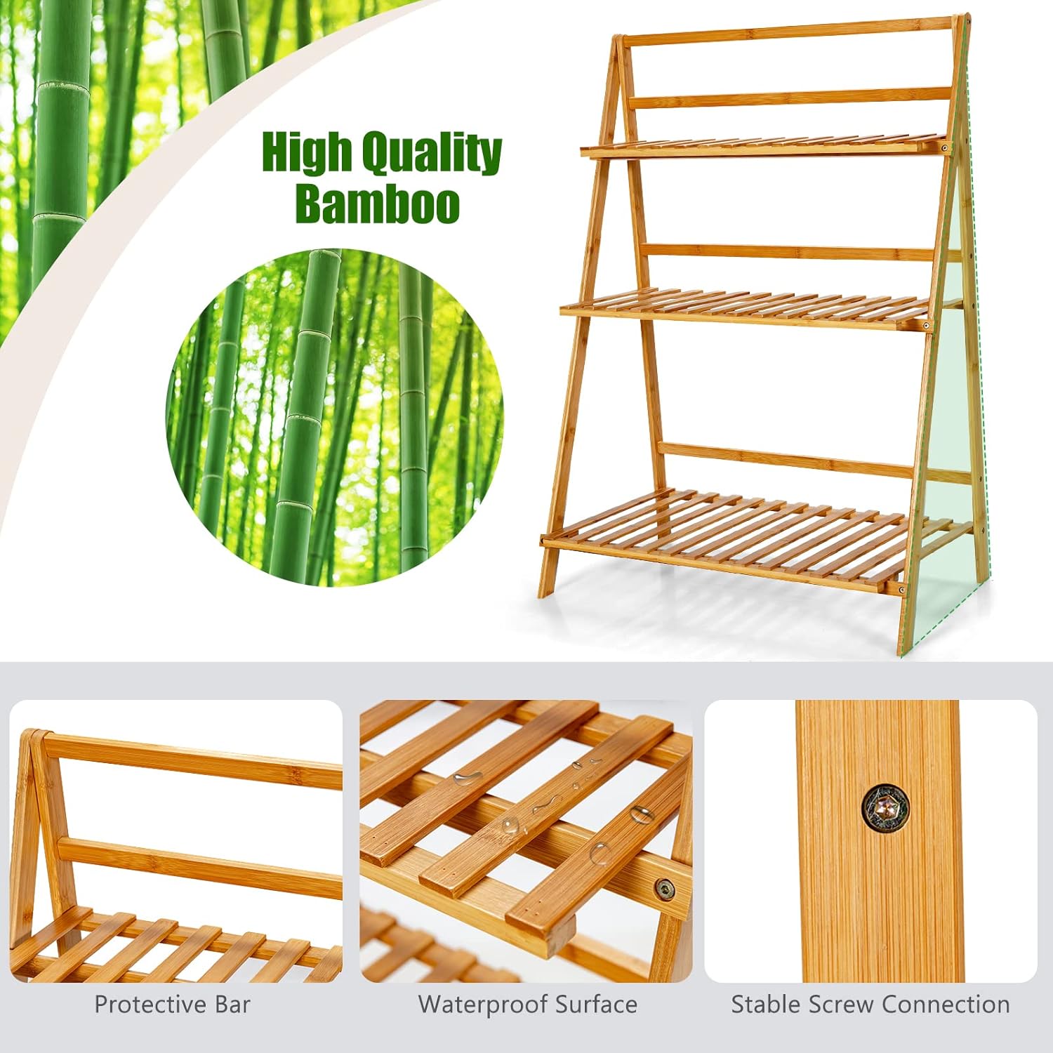 | Libellé | Support pour plantes pliable à 3 niveaux en bambou, étagère pour plantes pliante |