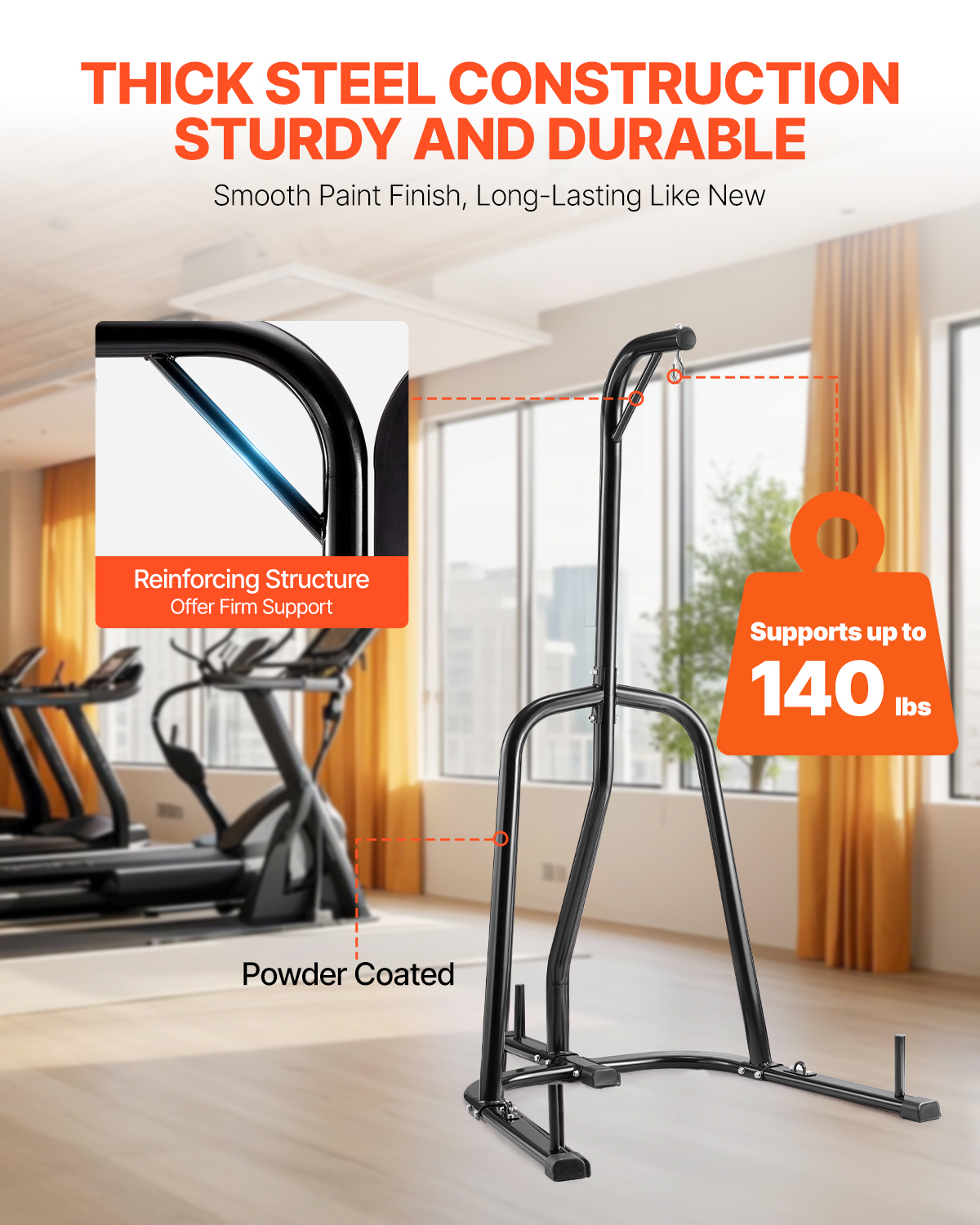 Robuste et durable : ce support de sac de frappe est fabriqué en acier au carbone de qualité supérieure, avec une structure en acier renforcée pour plus de stabilité et de résilience contre la pression. Un excellent revêtement assure la résistance aux rayures et la durabilité. Ce support de sac lourd en acier vous accompagnera pendant des années, améliorant vos entraînements