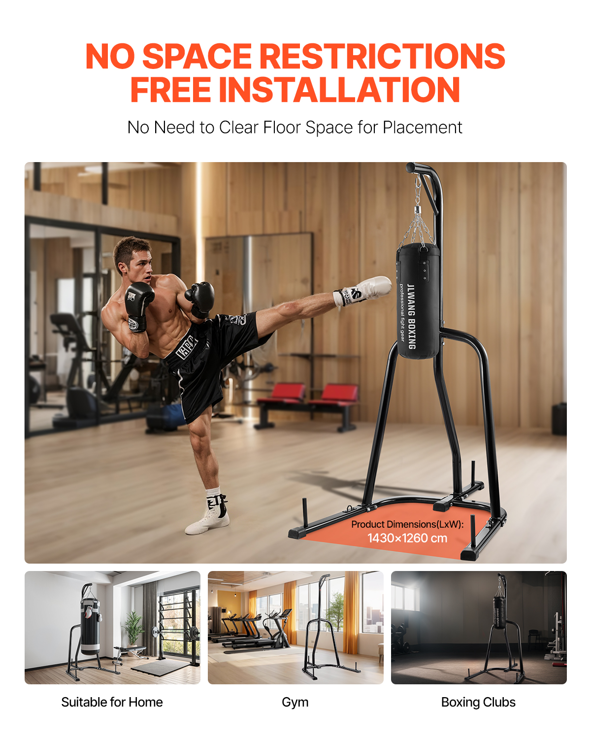 Faible encombrement : aucune exigence d'emplacement spécifique, installation gratuite, pas besoin de percer des trous dans les murs ou les plafonds. Cet équipement d'entraînement de boxe peut être placé sans libérer de l'espace au sol, adapté aux petits et grands espaces de vie, utilisable à la maison, dans les gymnases, les clubs de boxe, les studios d'arts martiaux, etc.