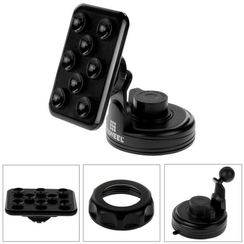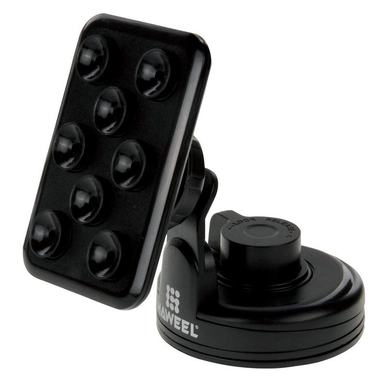 Ce support téléphone possède tout d'abord un système de ventouse actionnable pour qu'il puisse se coller au pare-brise de votre voiture. Il suffit d'activer un bouton pour que la ventouse s'accroche ou se décroche instantanément de votre pare-brise. Ensuite, l'autre support accrochant votre smartphone ou GPS est accroché au support principal afin qu'il demeure complètement immobile. Au nombre de 8, les ventouses offrent une stabilité optimale tout en vous évitant de régler le support selon la taille de votre appareil. Dans notre cas, il suffit de poser l'appareil sur les ventouses pour qu'il soit stable et opérationnel immédiatement. Universel, le support téléphone peut accueillir tous types de smartphones, GPS ou autres appareils à condition de prendre en compte la taille de la surface des ventouses (8.5 x 5.8 x 0.5 cm) . En plus d'être stable, le support smartphone dispose d'une rotation 360° grâce à la présence d'une boule située entre le socle principale et le support à ventouses. Grâce à cela, vous pouvez mettre à l'horizontale ou à la verticale votre écran en un instant sans avoir à régler de nouveau le support téléphone. Une visibilité totale grâce aux 8 ventouses présentes à l'arrière de l'appareil.