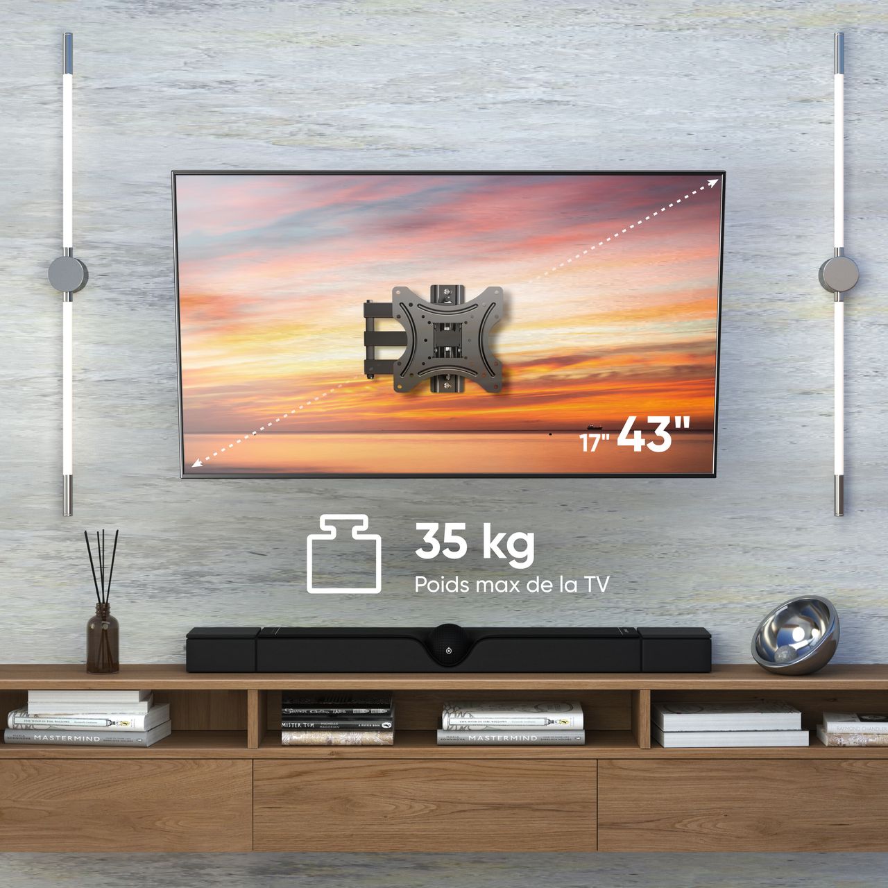 SUPPORT ECRAN PC MURAL | Bras mural TV 17 pouces - support mural TV 43 pouces permet de libérer de l'espace utile | Profitez encore plus confortablement de la television avec le bras support TV | Lorsqu'il est replié, la fixation ecran PC & tele est très ergonomique et n'occupe pas beaucoup d'espace