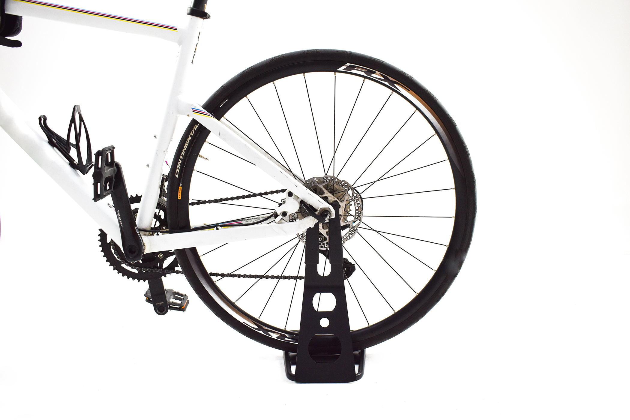 Support en acier peu encombrant permettant un maintient stable de votre vélo.Il s'adapte à tout type de vélo, souvent utilisé par les professionels du vélos. Se fixe sur la roue arrière.