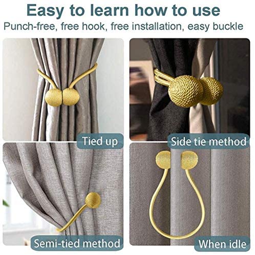 Retenue magnétique : Joli dos de couleur dorée avec un aimant puissant pour maintenir les rideaux.