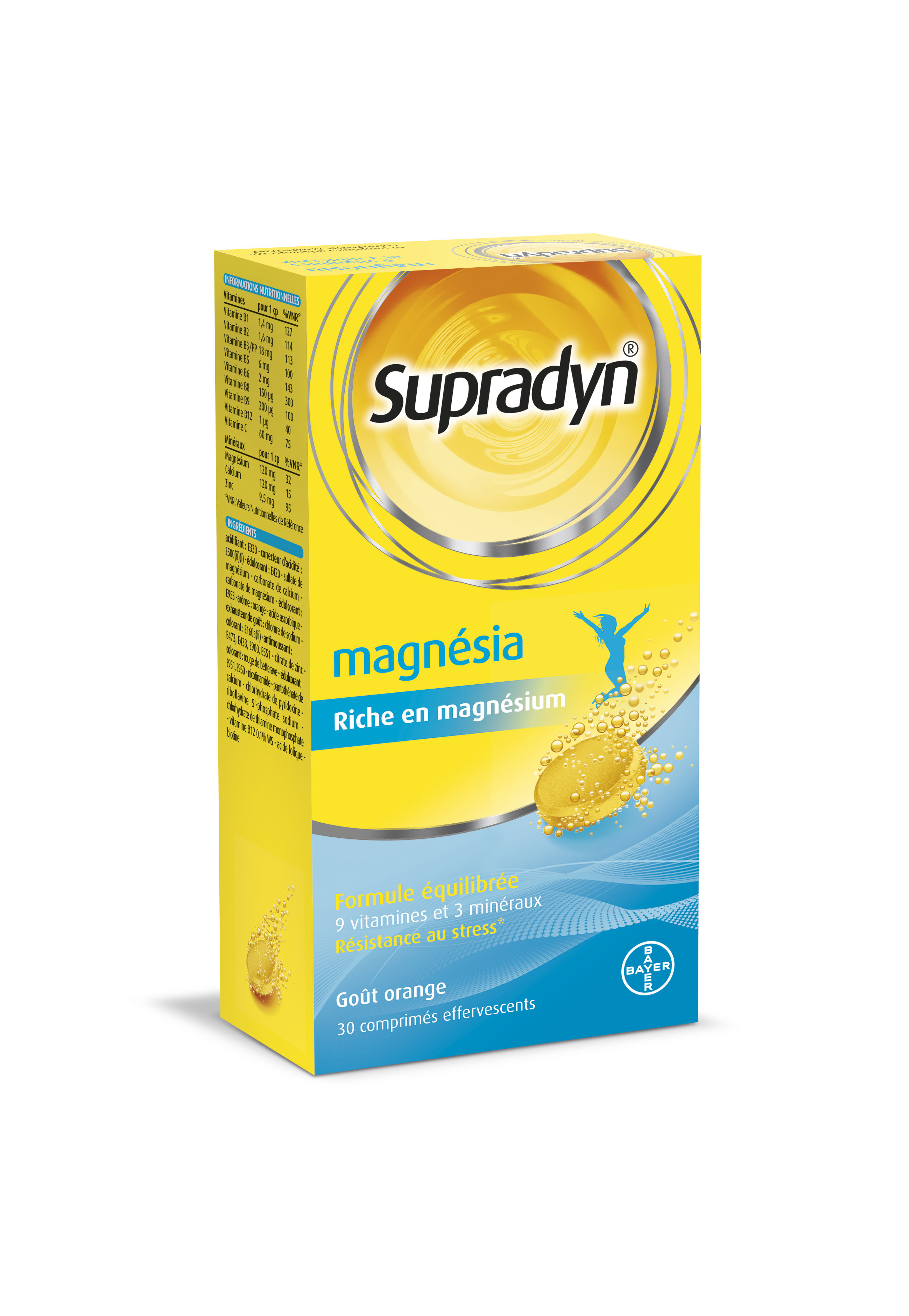 | Libellé | Supradyn Magnesia Vitamines ; minéraux et magnésium 30 comprimés effervescents Anti Stress |