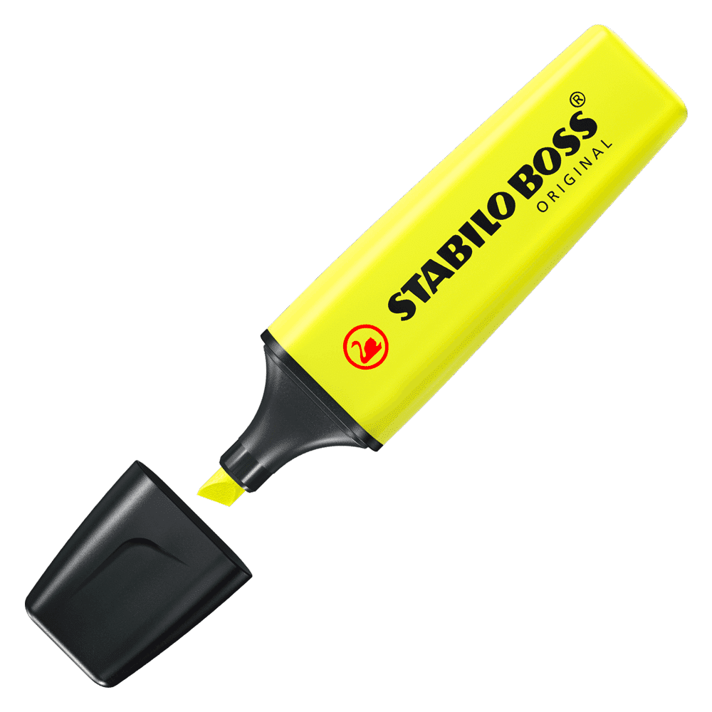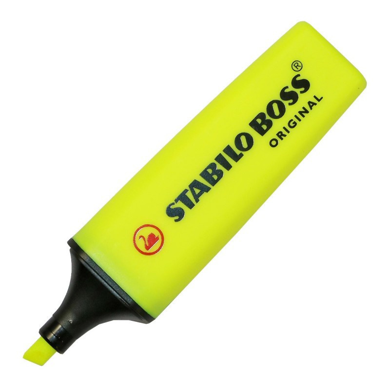 STABILO - Surligneur "Boss Original" - Jaune . Né en 1971, STABILO BOSS ORIGINAL est aujourd'hui une véritable référence. Depuis près de 50 ans, il traverse les générations. Plus qu'un surligneur, STABILO BOSS ORIGINAL est devenu un instrument de création pour créer, décorer, imaginer, et vous exprimer comme vous le souhaitez.. Son encre à base d'eau bénéficie d'une technologie exclusive développée par STABILO : il peut rester ouvert 4 heures sans sécher. Son encre assure également une résistance intense à la lumière sur tous les papiers. Et n'oubliez pas, il est rechargeable : économique et écologique !.