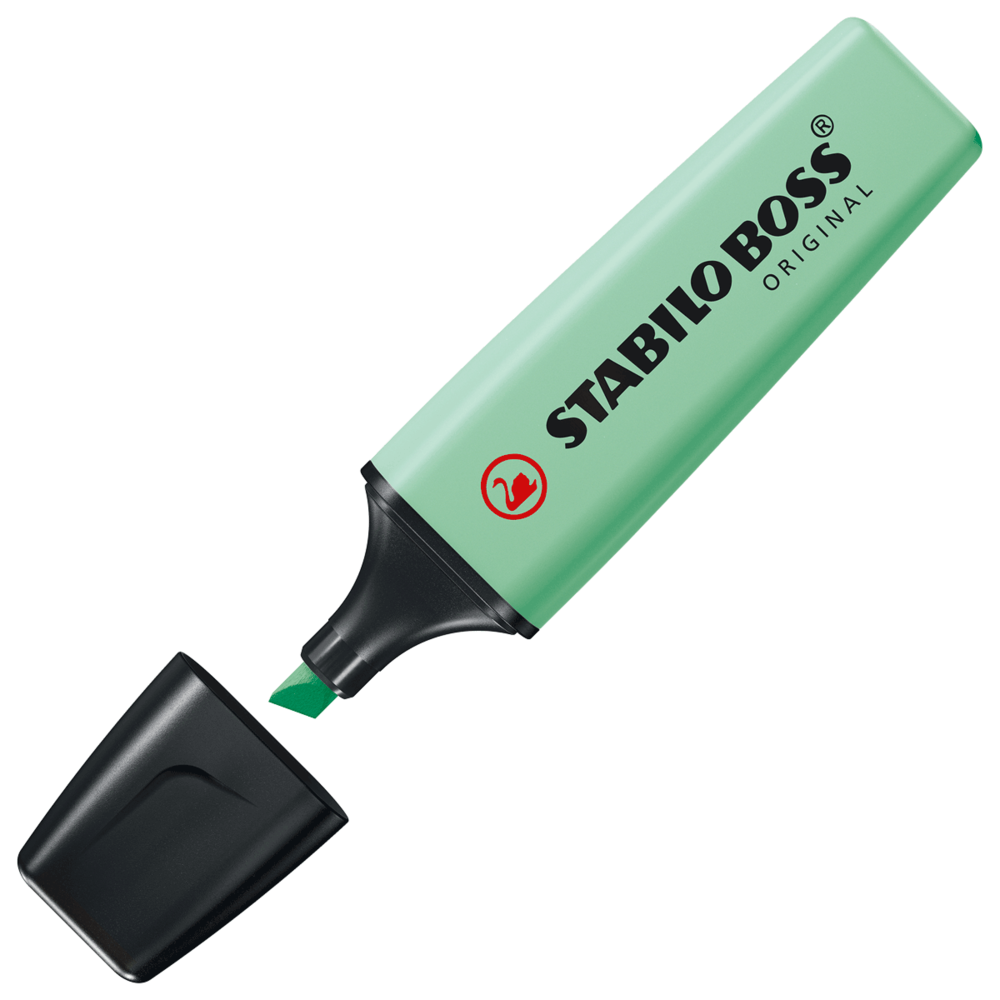 STABILO - Surligneur "Boss Original" Pastel - Vert pastel . Depuis 1971, STABILO BOSS ORIGINAL donne des couleurs à l'essentiel !. Disponible en 9 couleurs fluo, ce produit iconique se décline également en de nombreuses couleurs pastel délicates. Un vrai vent de fraîcheur sur votre bureau. Teint de pêche, menthe à l?eau, soupçon de rose, brume de Vert, crème de jaune, touche de turquoise, zeste de citron vert, nuage de bleu, pétale de rose, douceur de corail, sorbet abricot, fraîcheur de bleu, mauve givré ou encore poudre de gris : donnez une nouvelle touche de couleur à vos notes !. Plus qu'un surligneur, STABILO BOSS ORIGINAL Pastel est un véritable instrument de création pour créer, décorer, imaginer, et vous exprimer comme vous le souhaitez..