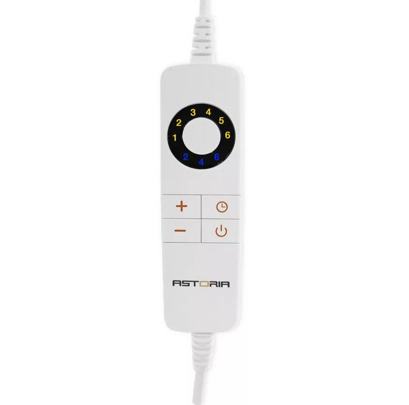 ad155a - surmatelas chauffant 1 place 150x80cm 100w - Surmatelas chauffant 1 place ASTORIA AD155A Très facile à installer entre le matelas et le draphousse, Le surmatelas Astoria assure une répartition homogène de la chaleur sur toute la surface du lit, procurant ainsi une douillette sensation de confort et de bien-être à tout votre corps. Sécurisé par un système de régulation automatique de la température, il est équipé d'une commande qui permet de régler la puissance de chauffage, y compris dans l'obscurité grâce à l'affichage lumineux. Ne surchauffez plus votre chambre et passez des nuits plus reposantes que jamais ! Tissu haute qualité doux et moelleux avec une finition tendance pour assurer un confort maximum. 6 choix de température adaptés pour une utilisation personnalisée. Protection de sécurité renforcée contre la surchauffe en cas de surmatelas plié. Commande à affichage lumineux et facile à manipule. Bandes élastiques de fixation pour un maintien parfait.