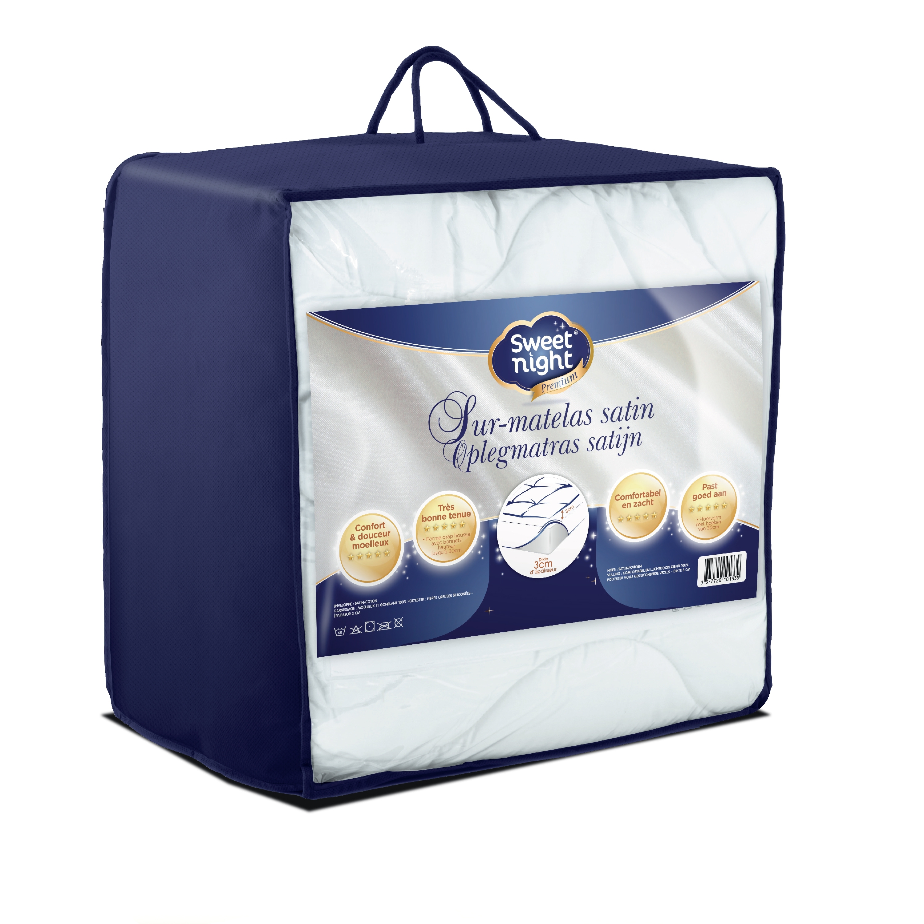 Offrez-vous des nuits de sommeil inoubliables avec le Surmatelas Luxe Ultra Moelleux et Confortable de Sweetnight. Sa douceur absolue est assurée par son enveloppe 100% coton, tandis que son garnissage en fibre creuse (725g/m²) vous procure un effet douillet et une meilleure circulation de l'air. La forme drap housse extensible jusqu'à 30cm assure un maintien parfait sur votre matelas. Facile à entretenir, ce surmatelas est lavable en machine à 30°C. Fabriqué en France avec une qualité hôtellerie de luxe, il est disponible en blanc et convient pour un couchage d'une personne de dimensions 90X190/200 cm.