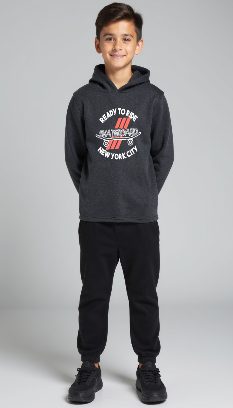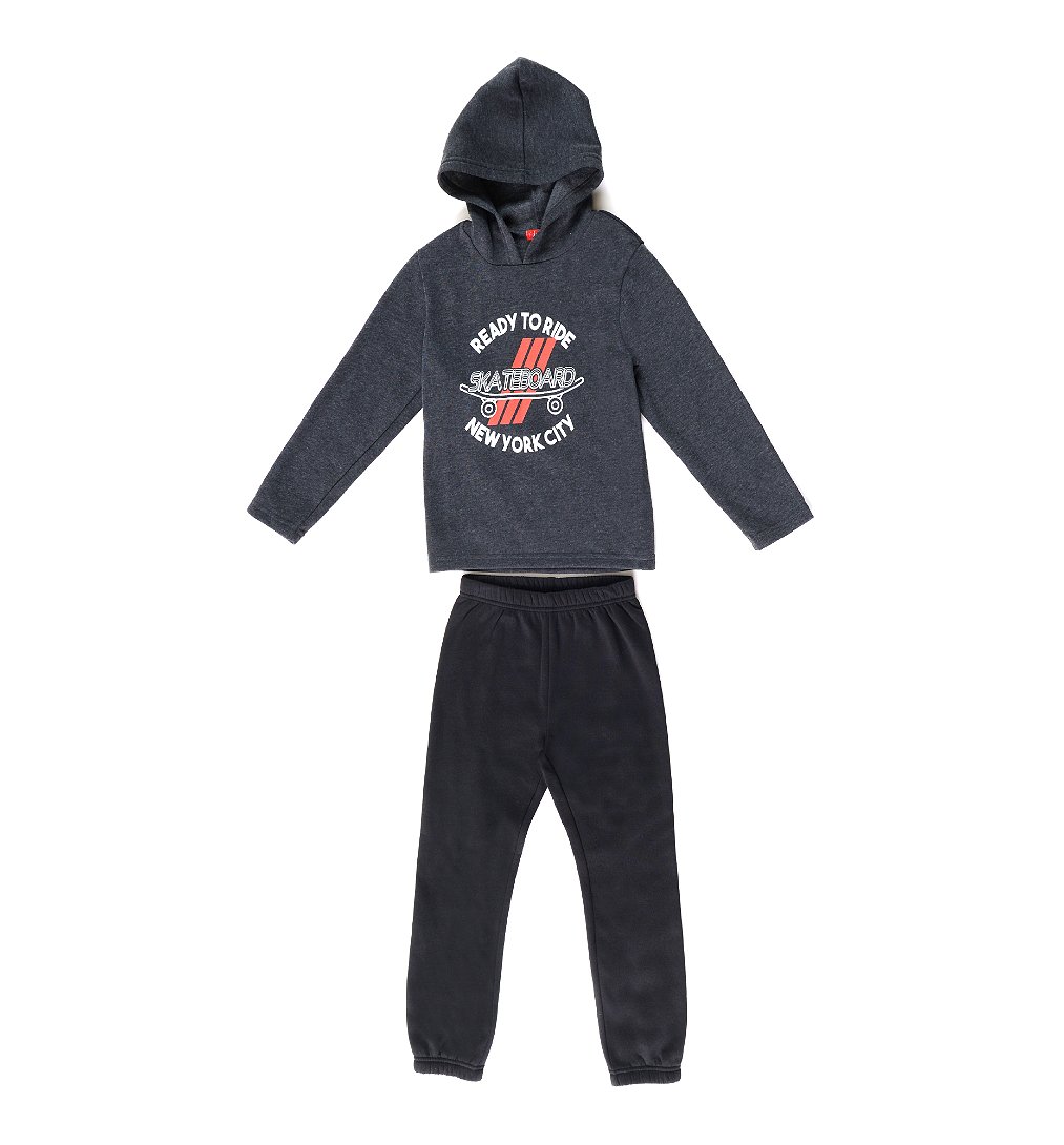 | Libellé | Survêtement molleton avec sweat à capuche impimé et bas reserré enfant Anthracite TISSAIA BASICS |