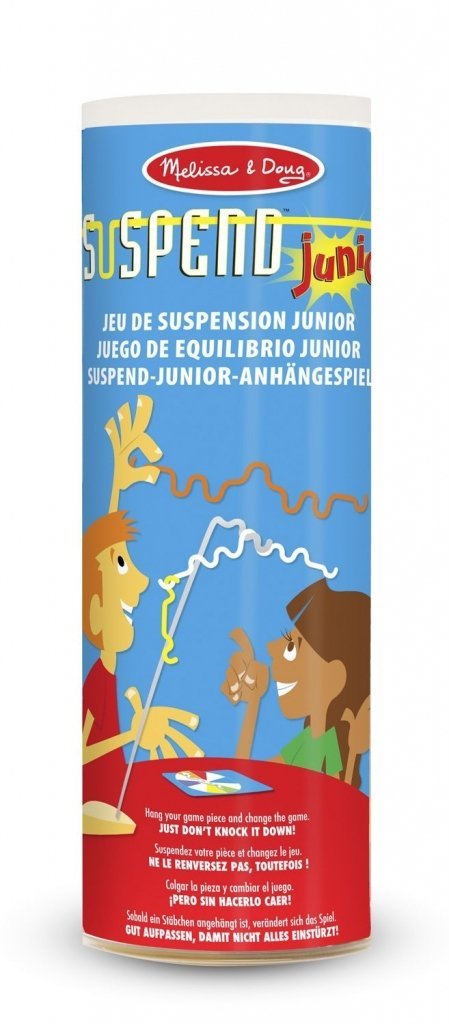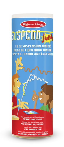 à partir de 4 ans moins de 30 min 2 à 4 joueur(s) La version Junior de Suspend adapte ce célèbre jeu d'équilibre aux plus petits avec des couleurs plus vives, des pièces plus légères et une toute nouvelle girouette.Les règles sont simples : il suffit d'installer les baguettes, de tourner la girouette et d'accrocher les pièces des couleurs indiquées pour créer une incroyable structure en équilibre. Fais la course contre tes adversaires pour être le premier à avoir accroché toutes tes pièces.Mais attention : un seul faux pas et la structure toute entière pourrait s'écrouler !Ce jeu passionnant est idéal pour les plus petits : il n'est pas nécessaire qu'ils sachent lire et leur agilité se développe partie après partie. Les enfants apprennent à équilibrer et contrebalancer, à prendre des risques maîtrisés et à en évaluer les conséquences, le tout avec des fous rires à la clé !
