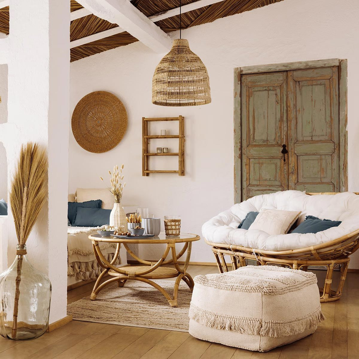 Cette suspension "aérienne et exotique devrait retenir votre attention. Cet abat-jour sous forme de cloche possède une structure en métal recouverte d'osier tressé. Cette matière naturelle vous procurera un sentiment de bien-être. Elle correspond parfaitement à un décor au style ethnique chic.L'osier est une matière résistante qui assurera une bonne longévité à votre luminaire. L'abat-jour ajouré permettra à l'ampoule de diffuser une douce lumière au plafond et sur vos murs. Si vous aimez les objets artisanaux, associez ce lustre à des paniers tressés. Quelques infos pratiques:. Dimensions : D. 45 x H. 50 cm. Câble : L. 100 cm. Douille : E27. Ampoule incluse : Non. Puissance max : 40W. Hauteur ajustable : Oui. Vendue à l'unité.