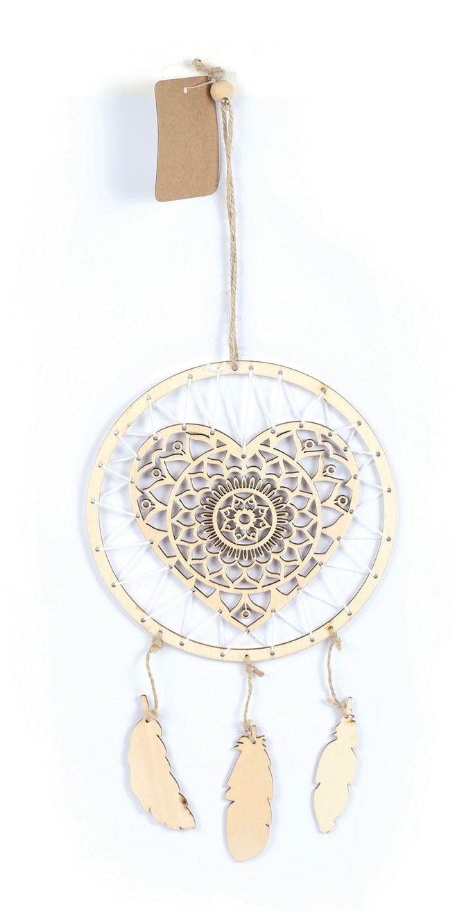 Libellé Suspension Attrape-Reves Cœur En Bois 160X410X3mm