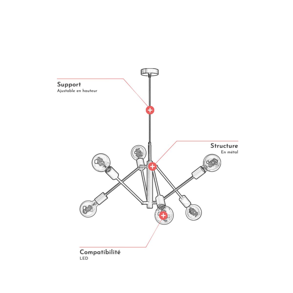 | Libellé | Suspension industrielle 6 lampes pour salon Lessie |