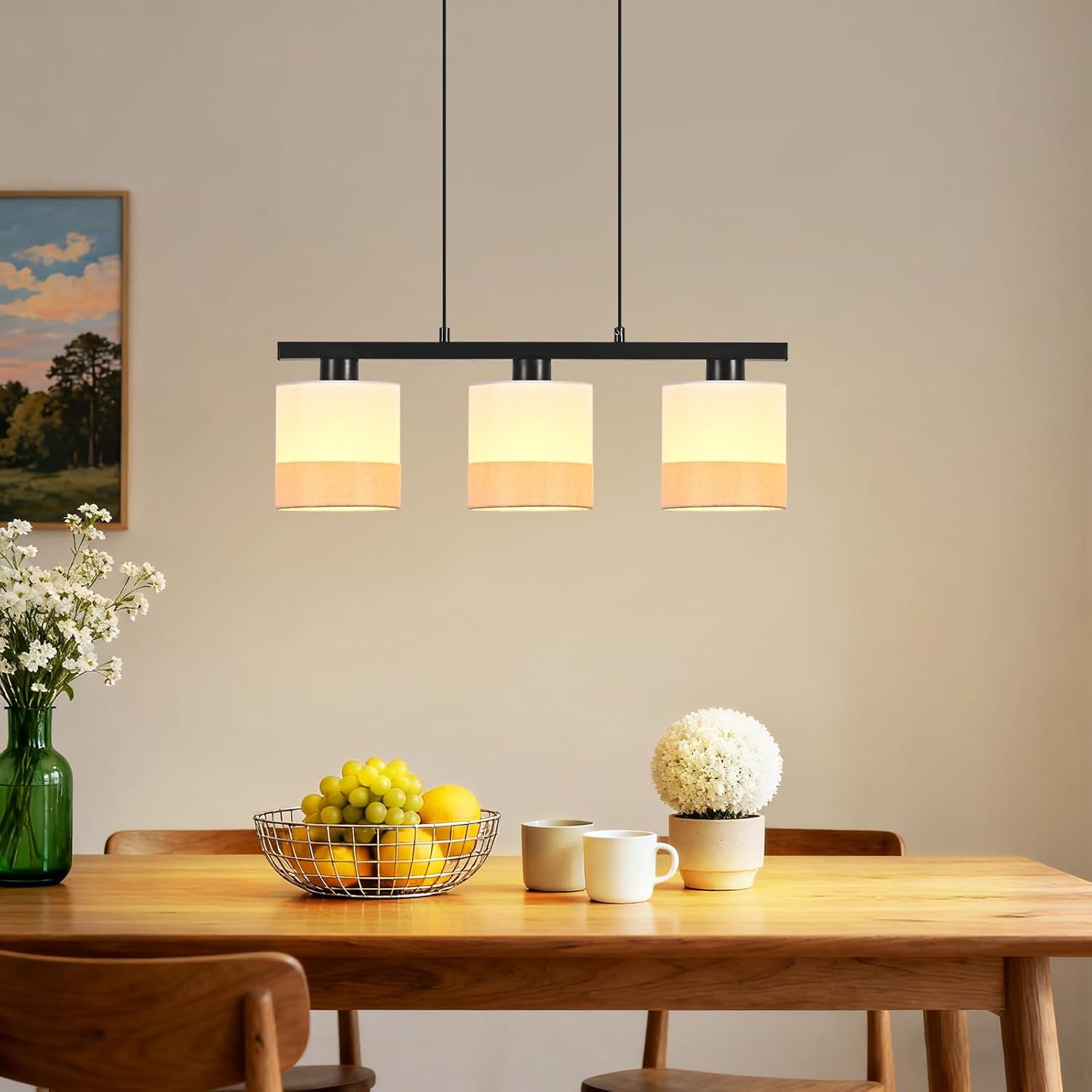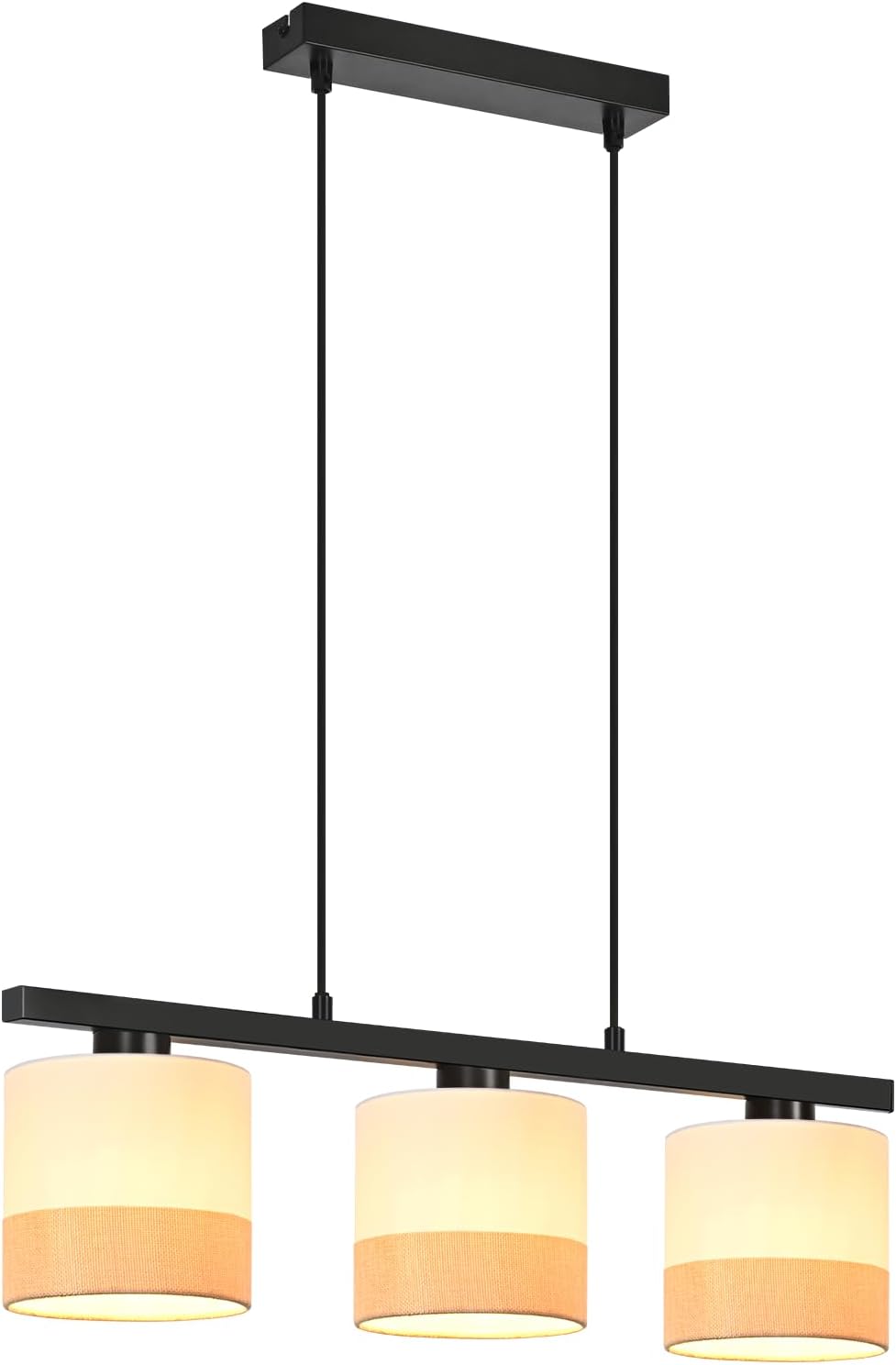 Suspension Nettlife pour table à manger, 3 lumières - Lampe suspendue vintage avec abat-jour en tissu bla