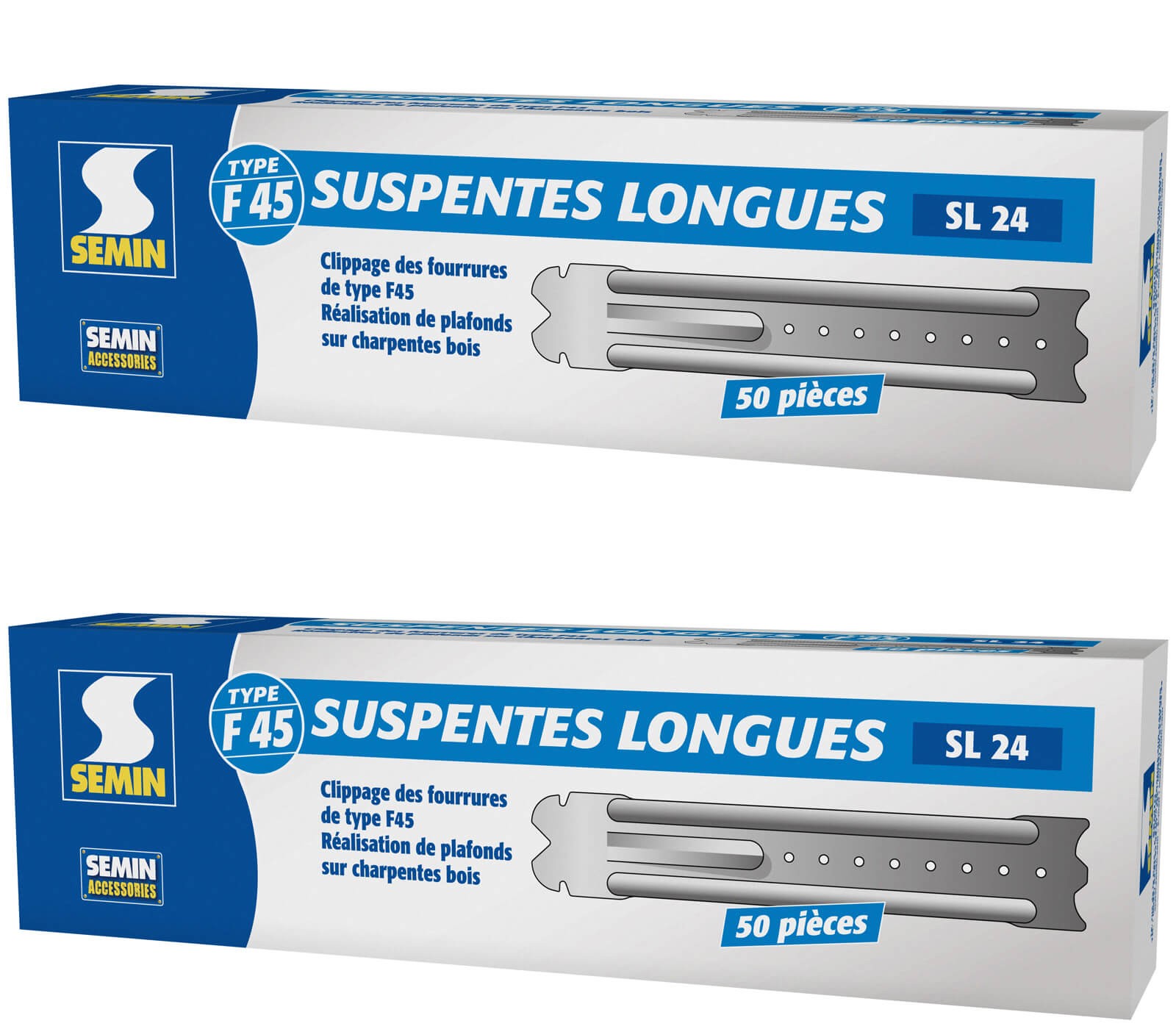 | Libellé | Suspentes longues 240 mm F45 Semin - Boite de 50 (lot de 2) |