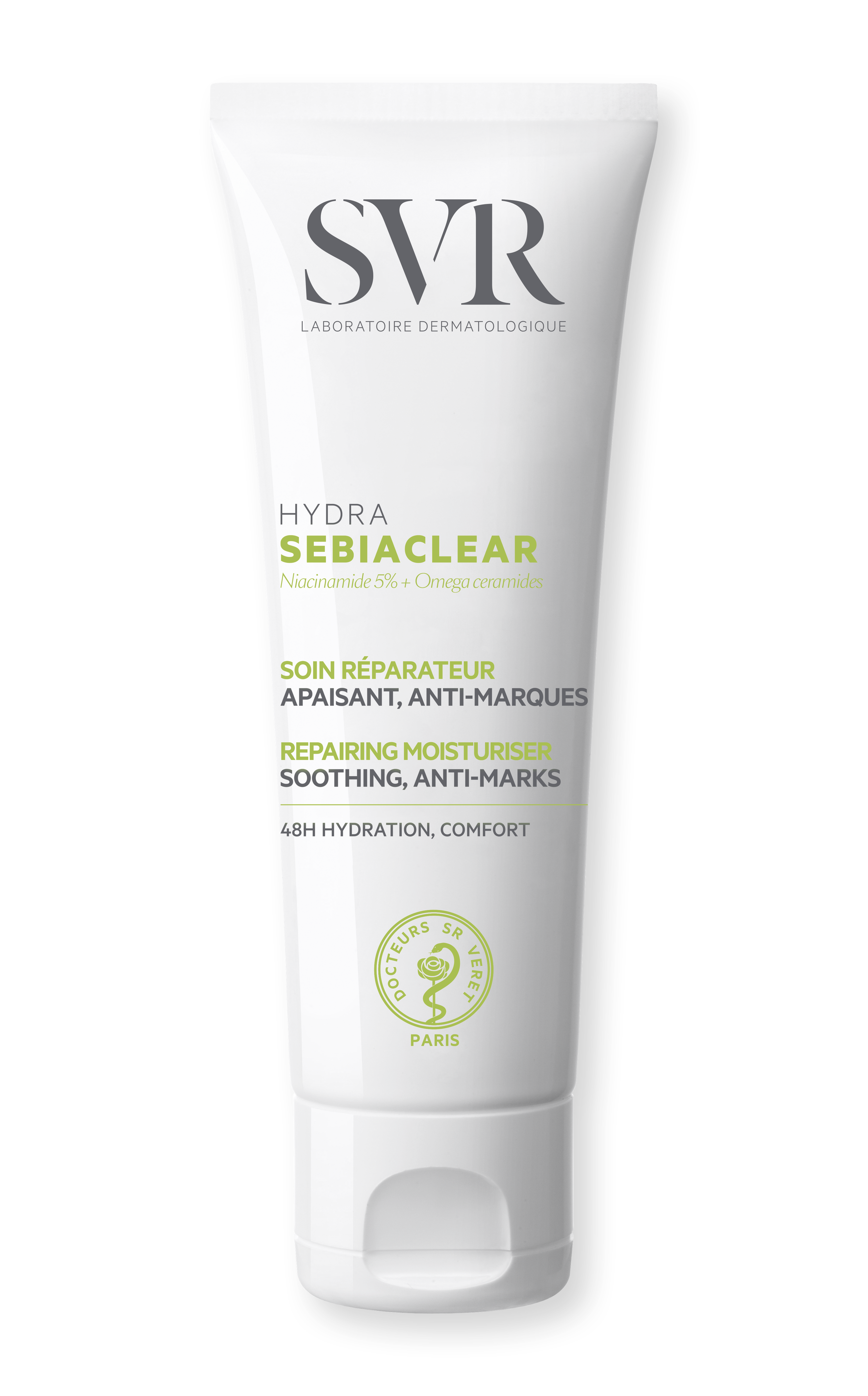 Les peaux à tendance acnéique sous traitements ont la peau sèche et fragilisée. Elles recherchent un soin adapté qui leur apporte confort et hydratation au quotidien. Plus qu’un hydratant compensateur, elles ont besoin d’un soin qui combat les imperfections et les marques résiduelles tout en hydratant leur peau qui subit une sécheresse intense. Pour répondre à ce besoin, SVR créé SEBIACLEAR HYDRA, le 1er* soin réparateur apaisant à l’efficacité anti-marques, cliniquement prouvée. CNK : 3434-974