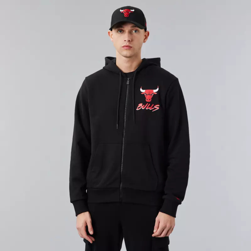 | Libellé | Sweat à Capuche zippé NBA Chicago Bulls New Era Script Noir |