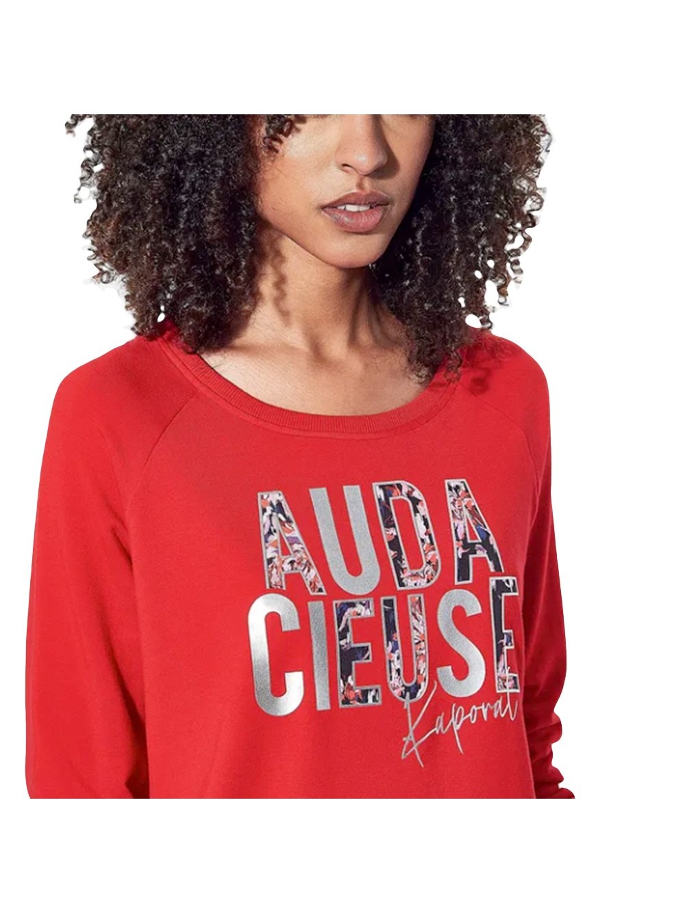 Sweat Kaporal Dakin Femme Rouge Coton. Authentique Vetement de la marque Kaporal - design streetwear/sportswear de Kaporal - Kaporal pour Femme fashion, parfait pour la vie de tous les jours - Sweat Kaporal de couleur Rouge s'associe parfaitement avec le reste de votre dressing - matiere Coton confortable - classic - Dakin -