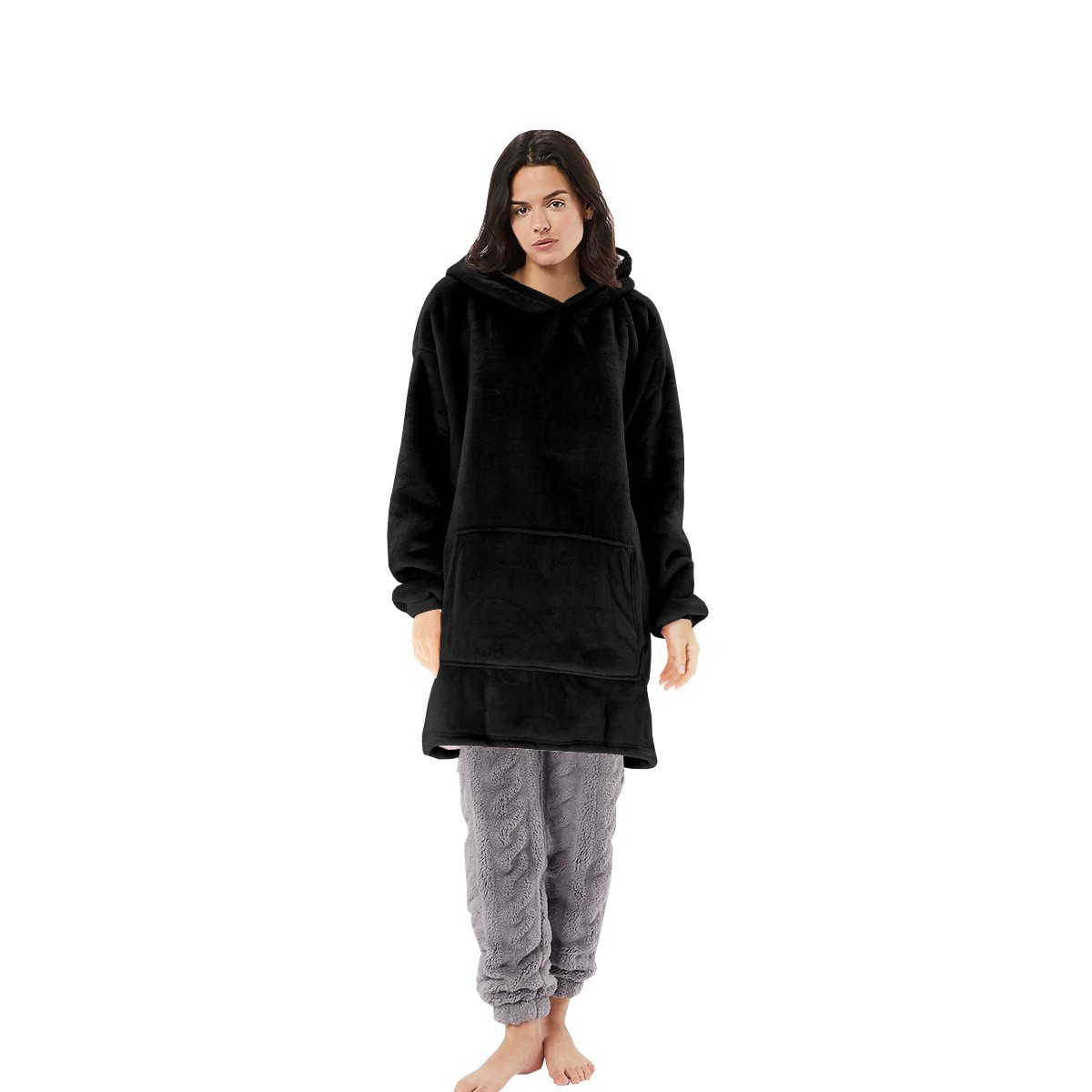 | Libellé | Sweat Polaire noir Plaid à Capuche molleton Confortable Taille Unique Femme Adulte Enfant |