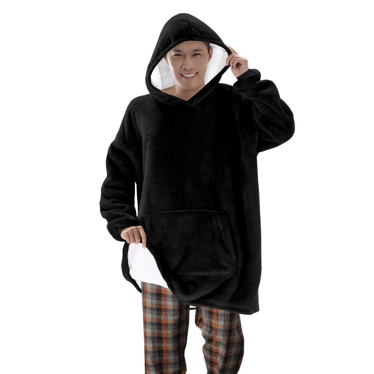 Sweat Polaire noir Plaid à Capuche molleton confortable Taille Unique Homme Adulte Enfant