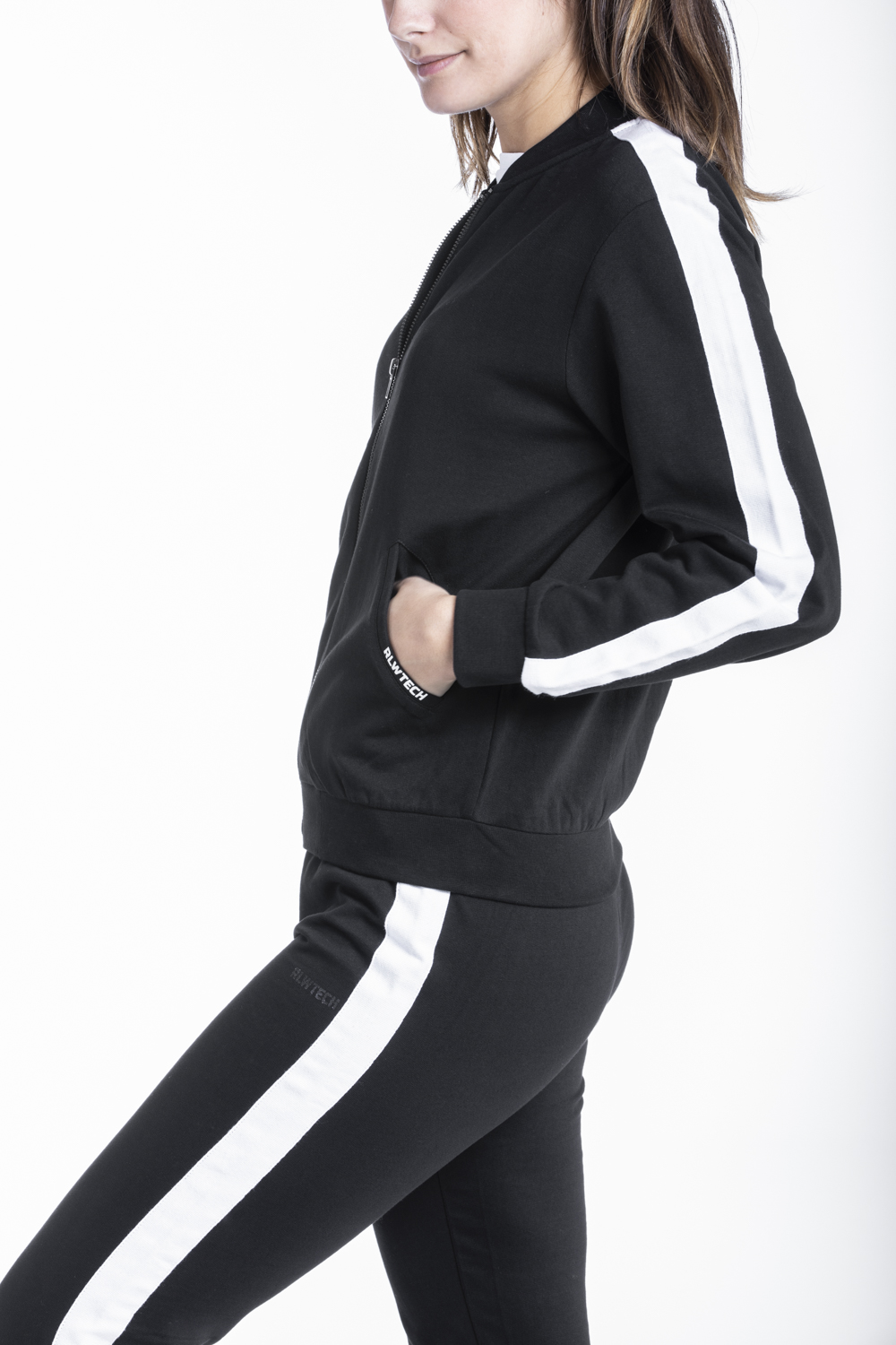 Sweat zippé, col bomber, coupe loose, finition côtelée aux manches et en bas de vêtement, application d'une bande de couleur contrastée sur les bras, poches passepoilées avec logo imprimé en relief, molleton non gratté, COTON 100% Le mannequin porte une taille M.